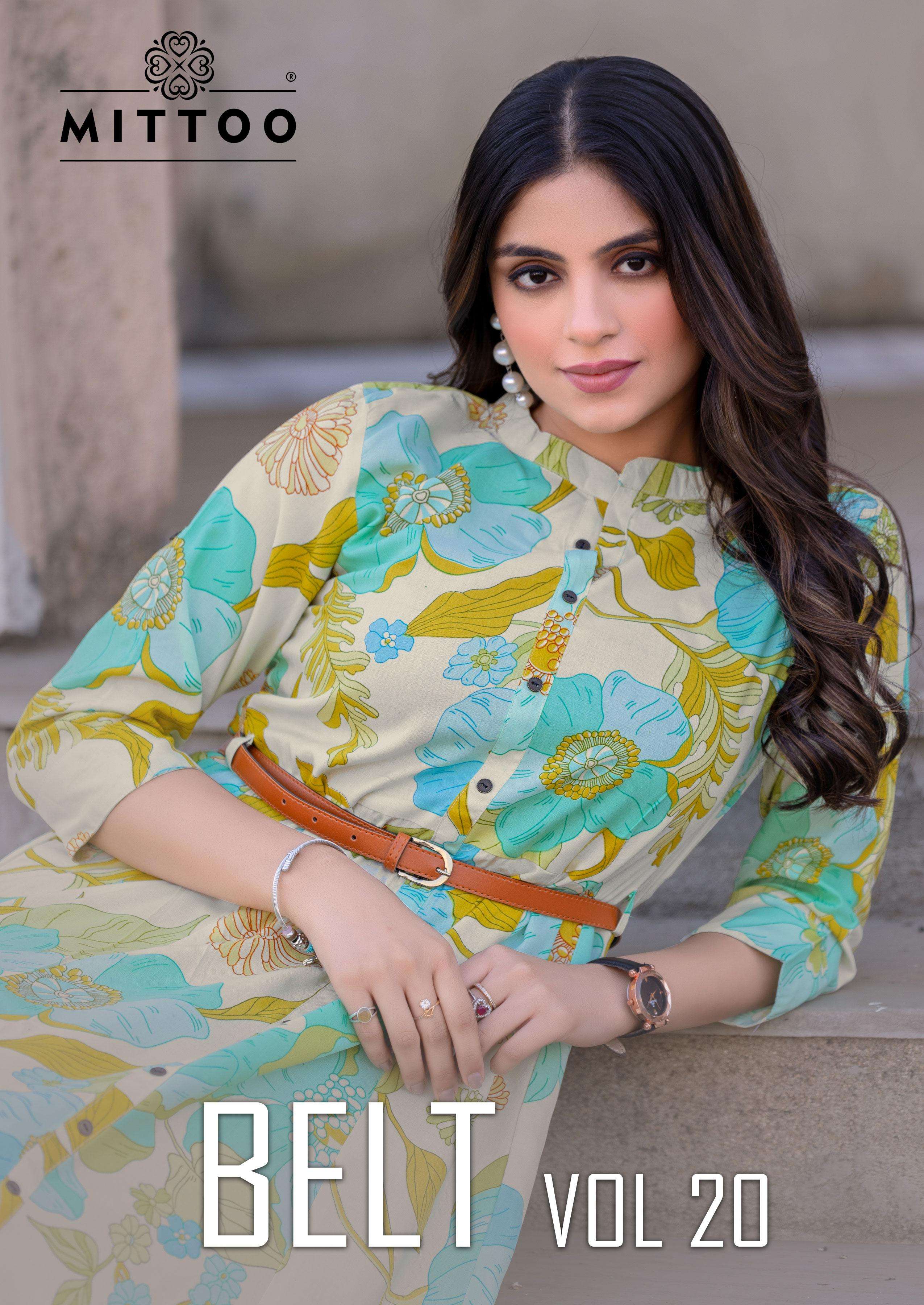 BELT VOL 20 by MITTOO Rayon Print Kurti collection manufacturer surat
