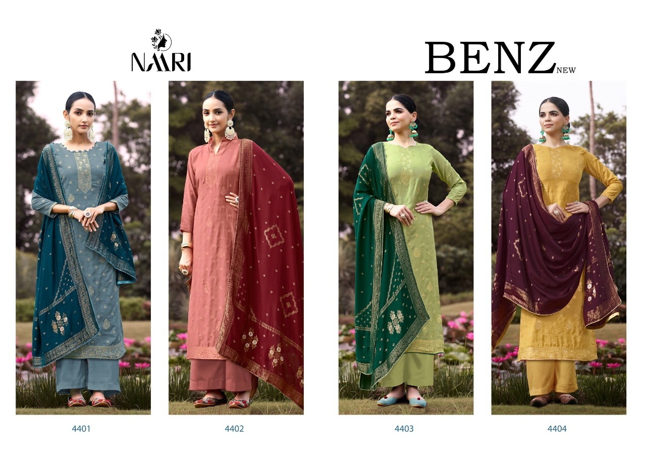 Buy Online Benz By Naari Muslin Jacard Suit 4 Pcs of Full Catalogue at Wholesale Price. Looking for Benz By Naari Muslin Jacard Suit Full Catalouge at Best Price? Buy Now Benz By Naari Muslin Jacard Suit at Wholesale Rate of Rs 4380 with Total 4 Pcs from authroized dealer and supplier of Brand. Cost of Each piece is just only Rs 1095 which is very low and affordable price to resale the product in your retail store ,This is Surat based Wholesale Supplier & Dealer of Brand. Click on Brand name to Know more about Brand's products.Call or Whatsapp on 9898838984 for booking or enquiry