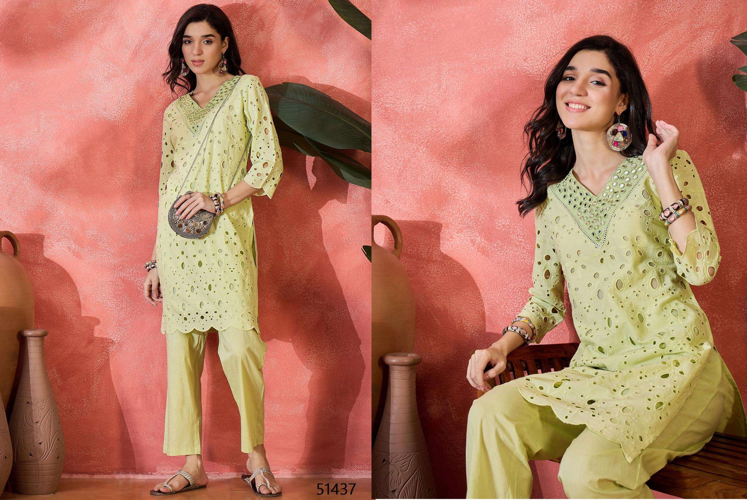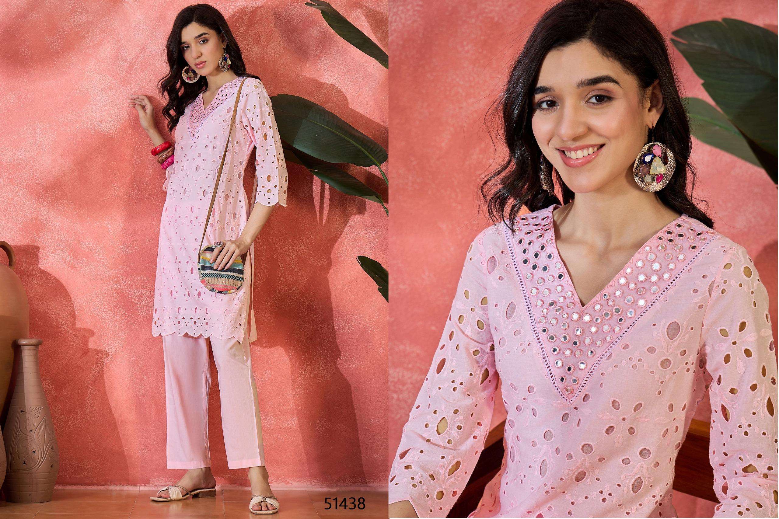 *Fabric: Pure Cotton Schiffli Designer Kurta Set with Soft Mirrorwork*