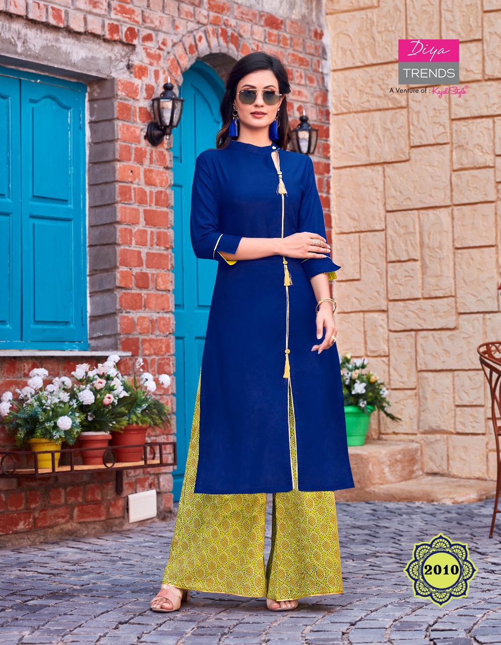 Buy Online Bibas Vol 2 By Diya Trendz Kurtis With Plazzo Wholesale Supplier Surat 14 Pcs of Full Catalogue at Wholesale Price. Looking for Bibas Vol 2 By Diya Trendz Kurtis With Plazzo Wholesale Supplier Surat Full Catalouge at Best Price? Buy Now Bibas Vol 2 By Diya Trendz Kurtis With Plazzo Wholesale Supplier Surat at Wholesale Rate of Rs 6986 with Total 14 Pcs from authroized dealer and supplier of KAJAL STYLE Brand. Cost of Each piece is just only Rs 499 which is very low and affordable price to resale the product in your retail store ,This is Surat based Wholesale Supplier & Dealer of KAJAL STYLE Brand. Click on Brand name to Know more about KAJAL STYLE Brand's products.Call or Whatsapp on 9898838984 for booking or enquiry
