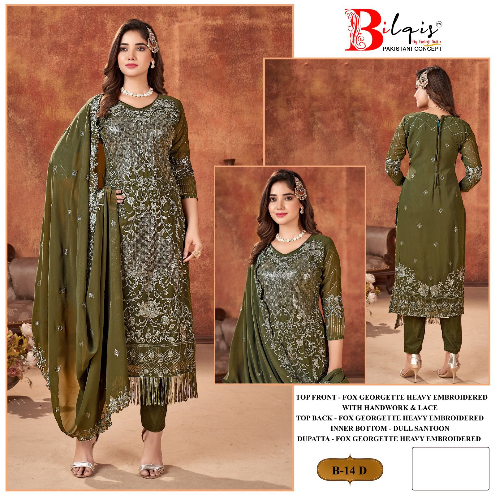 Buy Online Bilqis D No B 14a To D Georgette Embroidered Collection Manufacturer Surat 4 Pcs of Full Catalogue at Wholesale Price. Looking for Bilqis D No B 14a To D Georgette Embroidered Collection Manufacturer Surat Full Catalouge at Best Price? Buy Now Bilqis D No B 14a To D Georgette Embroidered Collection Manufacturer Surat at Wholesale Rate of Rs 5196 with Total 4 Pcs from authroized dealer and supplier of Brand. Cost of Each piece is just only Rs 1299 which is very low and affordable price to resale the product in your retail store ,This is Surat based Wholesale Supplier & Dealer of Brand. Click on Brand name to Know more about Brand's products.Call or Whatsapp on 9898838984 for booking or enquiry