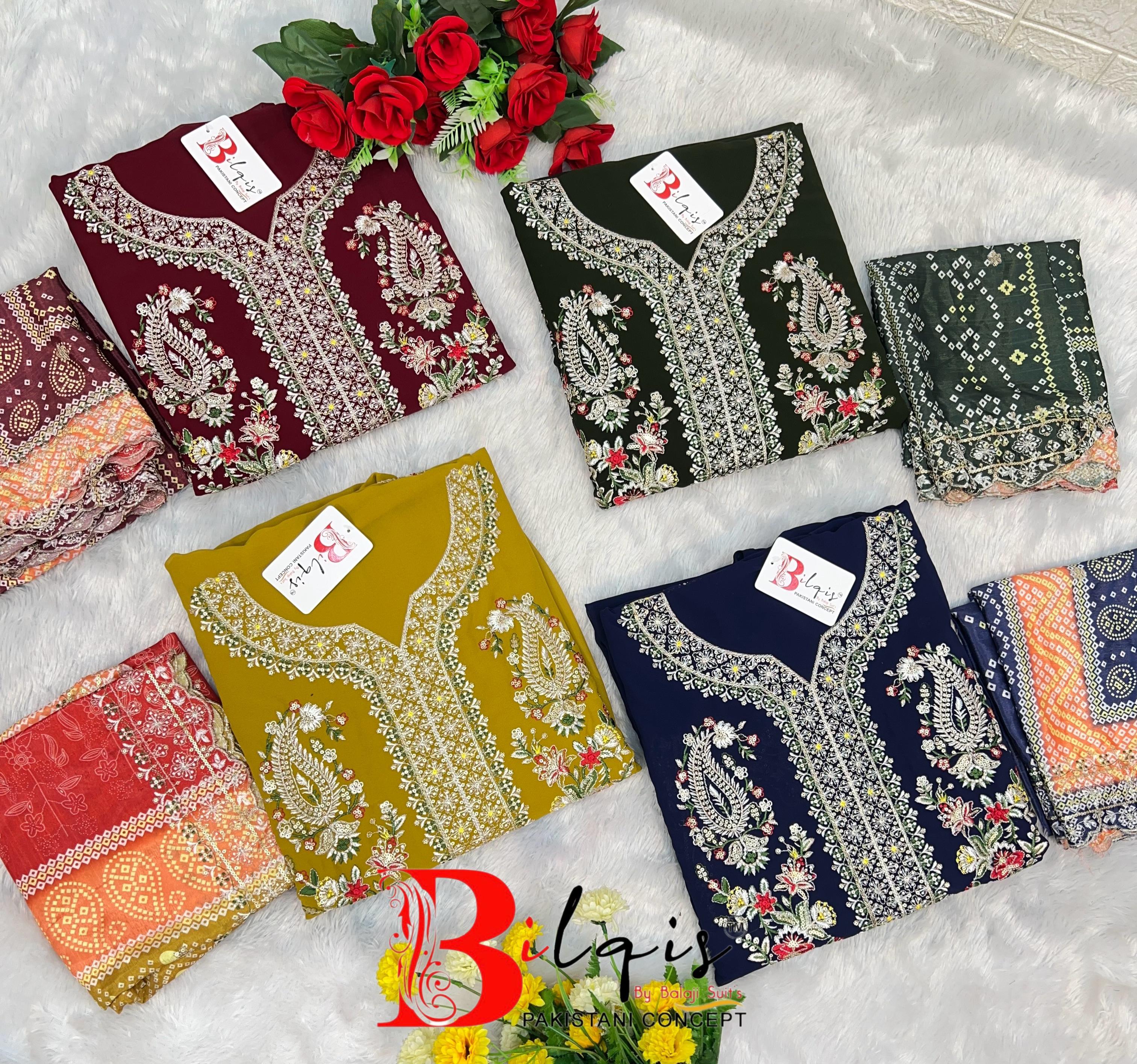 Buy Online Bilqis D No B 17 E To H Georgette Pakistani Suits 4 Pcs of Full Catalogue at Wholesale Price. Looking for Bilqis D No B 17 E To H Georgette Pakistani Suits Full Catalouge at Best Price? Buy Now Bilqis D No B 17 E To H Georgette Pakistani Suits at Wholesale Rate of Rs 4396 with Total 4 Pcs from authroized dealer and supplier of Brand. Cost of Each piece is just only Rs 1099 which is very low and affordable price to resale the product in your retail store ,This is Surat based Wholesale Supplier & Dealer of Brand. Click on Brand name to Know more about Brand's products.Call or Whatsapp on 9898838984 for booking or enquiry