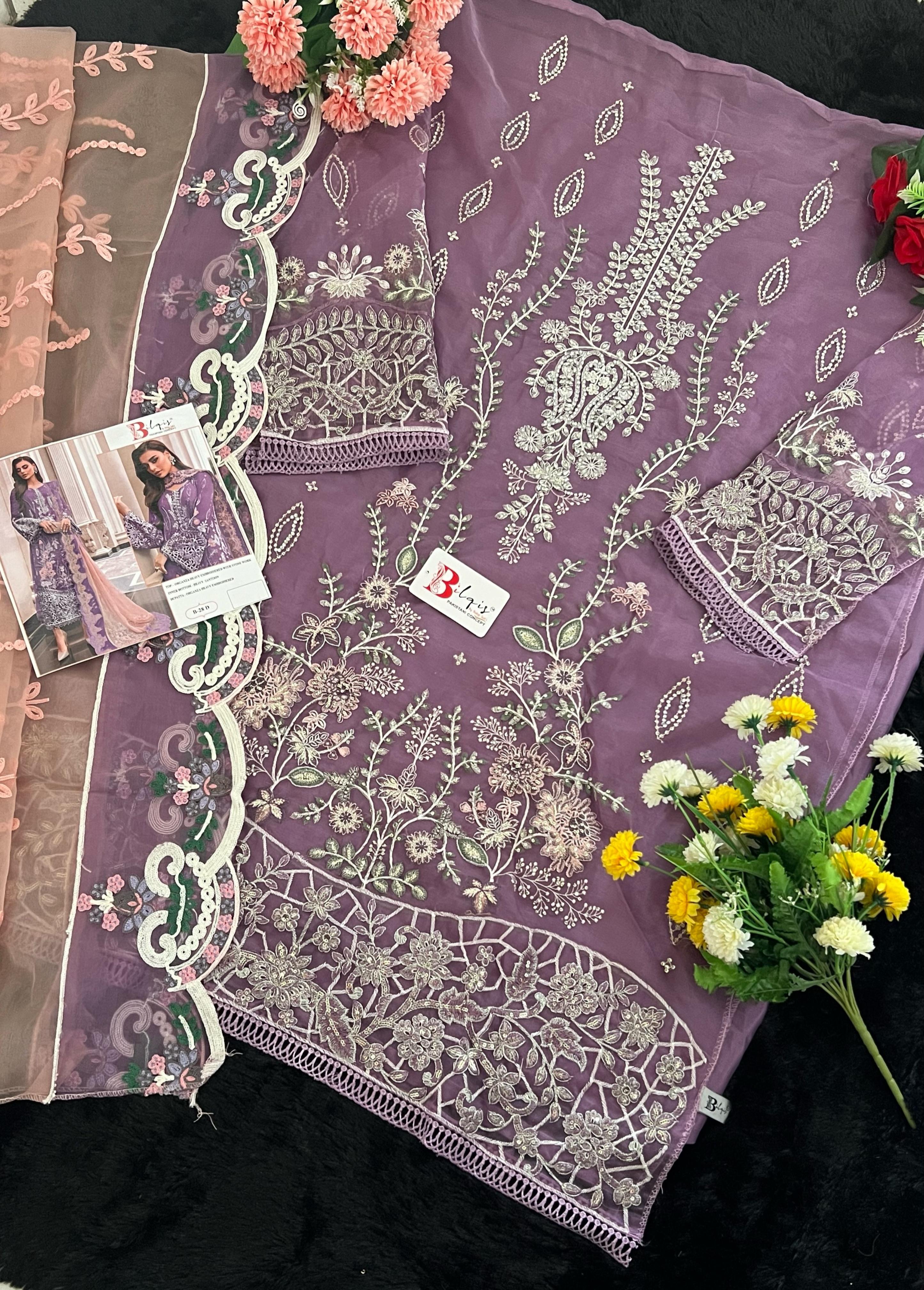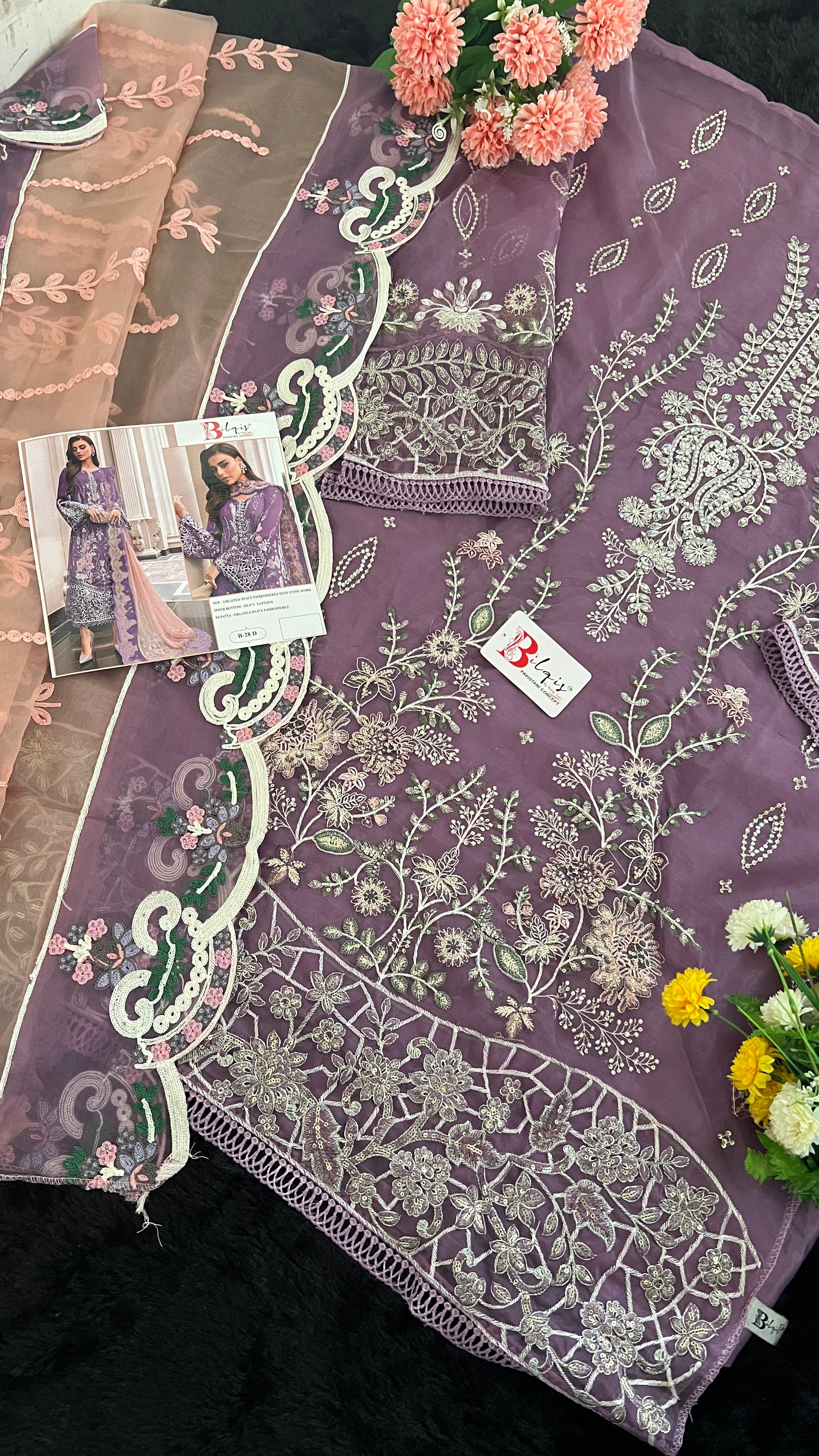 Bilqis D No B 28d Organza Pakistani Suit