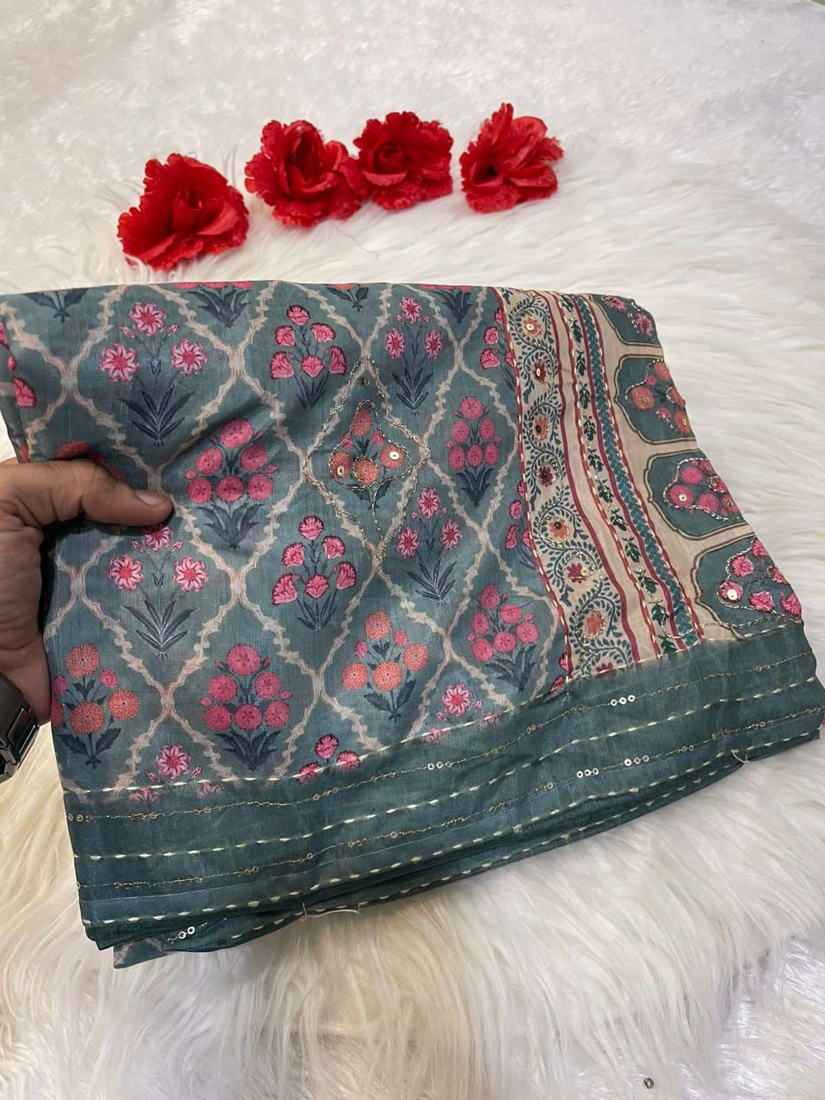 (#-1143) ➖➖➖➖➖➖➖ ✨ by ALEENA®️ ✨ ➖➖➖➖➖➖➖➖ ❤️ Description❤️ 〰〰〰〰〰〰〰 Designer Tunic Embellished with beautiful embroidery WITH SEQUINS WORK - THREAD WORK - PATCH WORK TOP & sleeves embroidery sequence with open koti (not attached) & paired with Classic fine pant WITH digital dupatta.