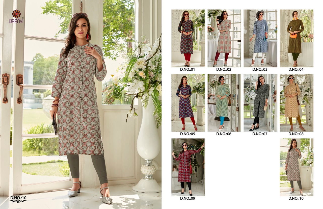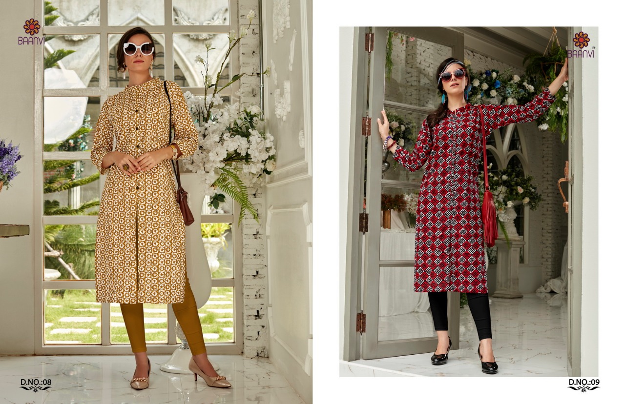 ? *R STUDIO launches exclusive designer kurti* ? *BAANVI* ?Catalogue name- BINDU ?Fabric -CAMRIC COTTON PRINT ?Size -S-36, M-38,L-40,XL-42,XXL-44, 3XL-46 ?Length - 43+ ?Designs- 10 ?Rate:- 275/- *GST +5% ADD ON BILL AMT* order and inquiry +919898838984 |