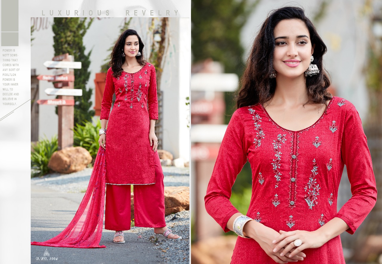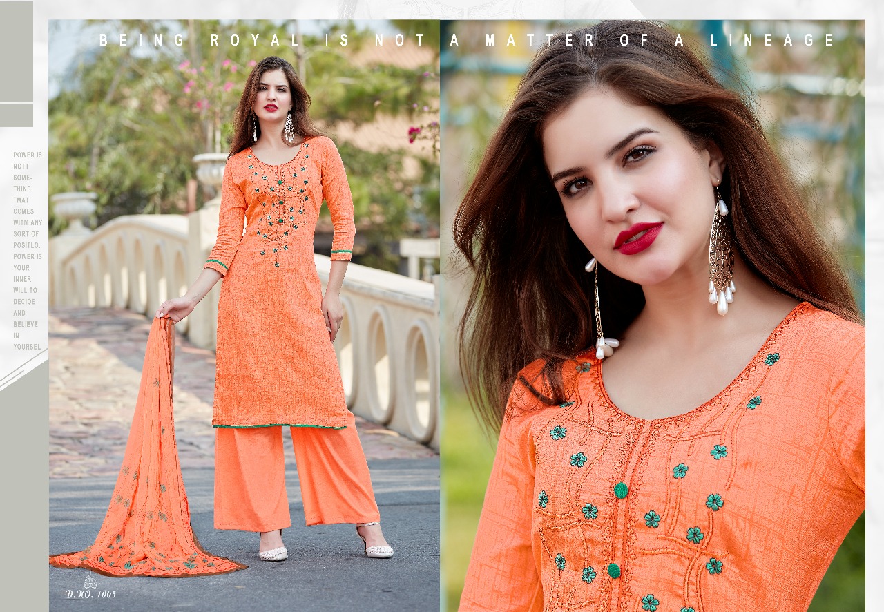 Bipson prints pvt ltd Launching our new catalog in hit series of Zaam satin with embroidery work ?Simran? Fabrics details Top - Fancy zaam satin print with embroidery exclusive neck work Bottom- Pure cotton dyed Dupatta- Pure bemberg print 2.5 mtr BOTTOM Price - 745/- Set to set . GST 5 Percent Extra. Book your order now . Delivery 2-3 days |