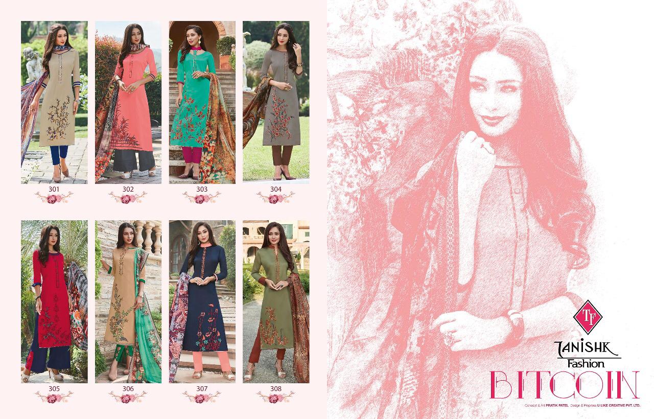 Bitcoin by tanishk fashion series 301 to 308 printed designer suits wholesale supplier surat Price 895/- Gst extra |