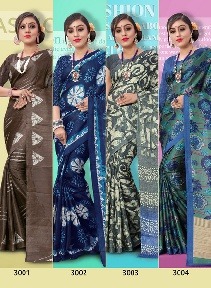 Buy Online Black Jack By Sangam 3001 Series Fancy Jute Linen Printed Saree Catlog Wholesale Dealer Surat 8 Pcs of Full Catalogue at Wholesale Price. Looking for Black Jack By Sangam 3001 Series Fancy Jute Linen Printed Saree Catlog Wholesale Dealer Surat Full Catalouge at Best Price? Buy Now Black Jack By Sangam 3001 Series Fancy Jute Linen Printed Saree Catlog Wholesale Dealer Surat at Wholesale Rate of Rs 4600 with Total 8 Pcs from authroized dealer and supplier of SANGAM Brand. Cost of Each piece is just only Rs 575 which is very low and affordable price to resale the product in your retail store ,This is Surat based Wholesale Supplier & Dealer of SANGAM Brand. Click on Brand name to Know more about SANGAM Brand's products.Call or Whatsapp on 9898838984 for booking or enquiry