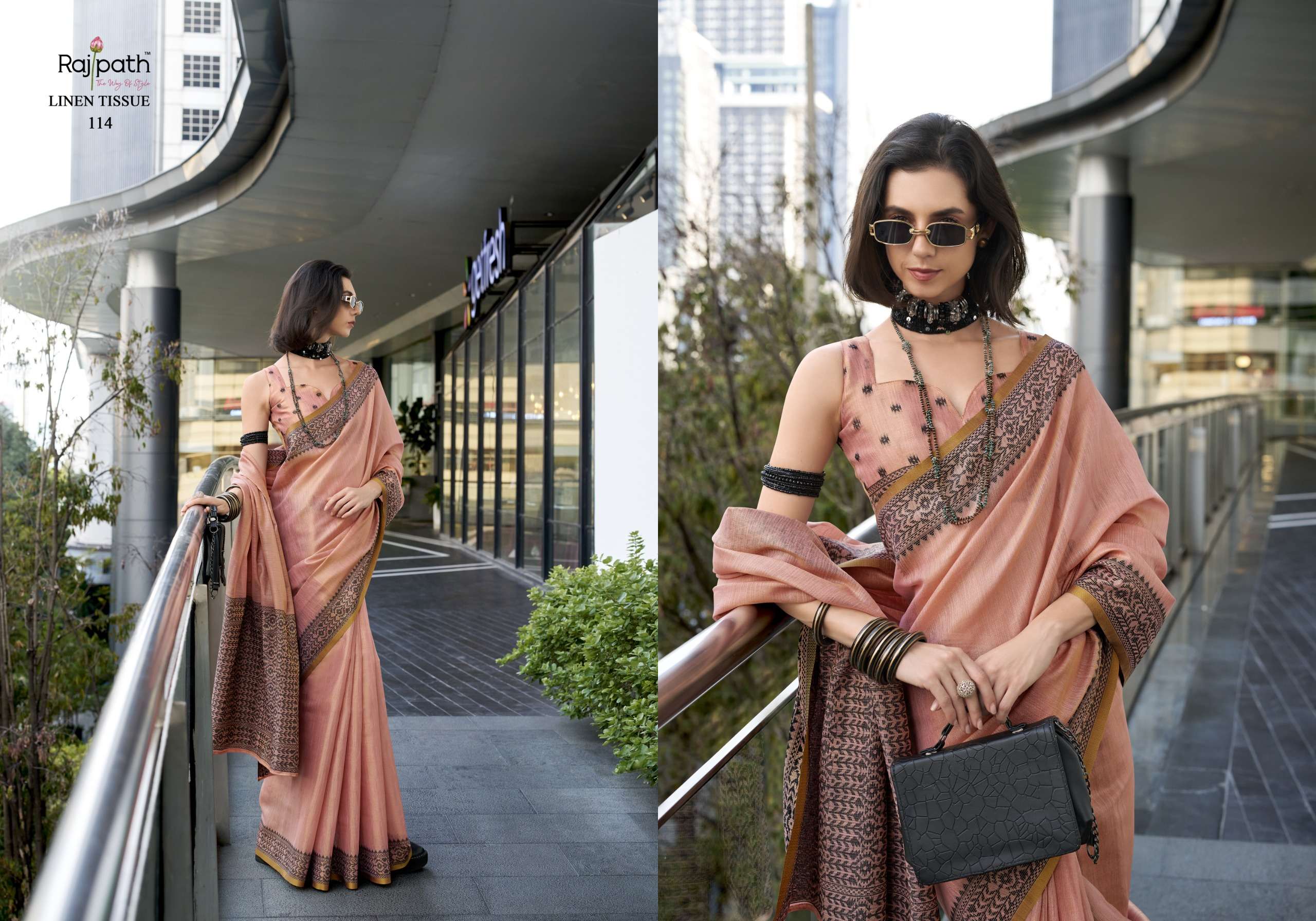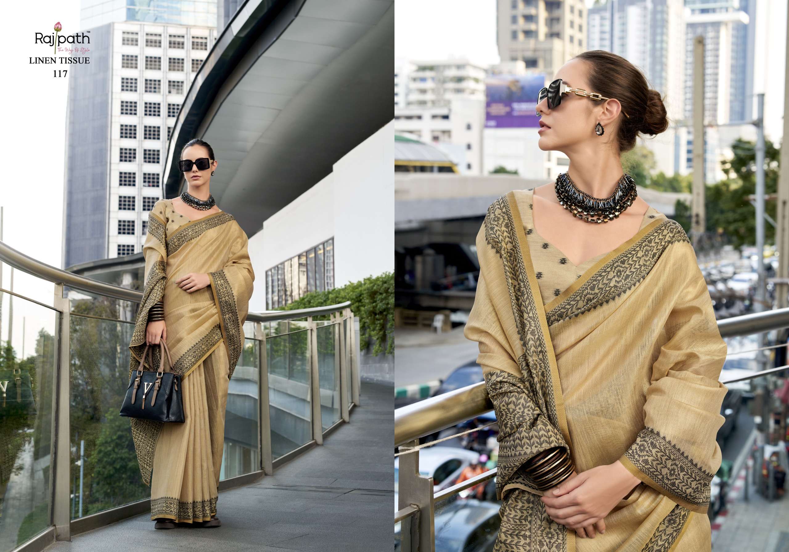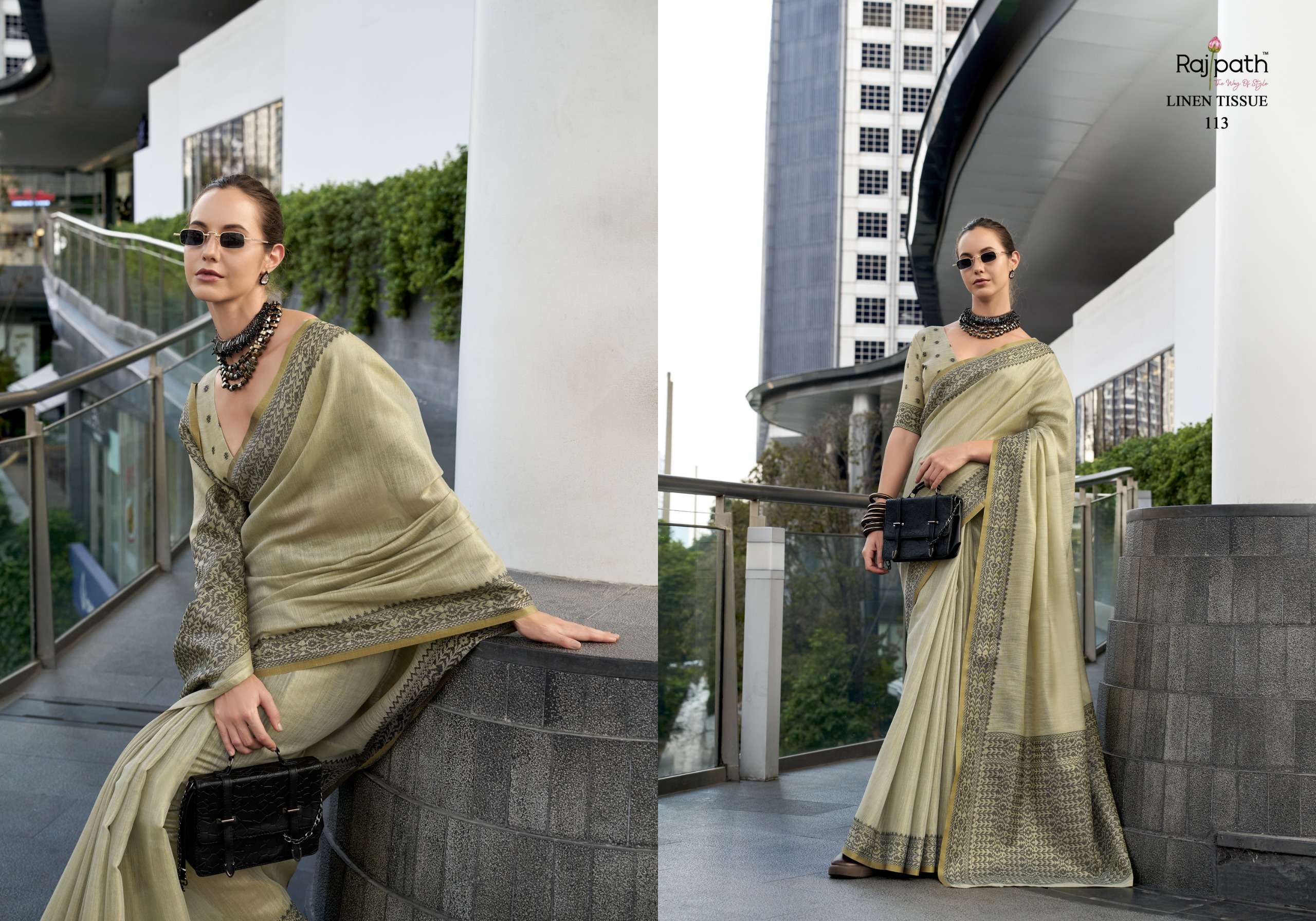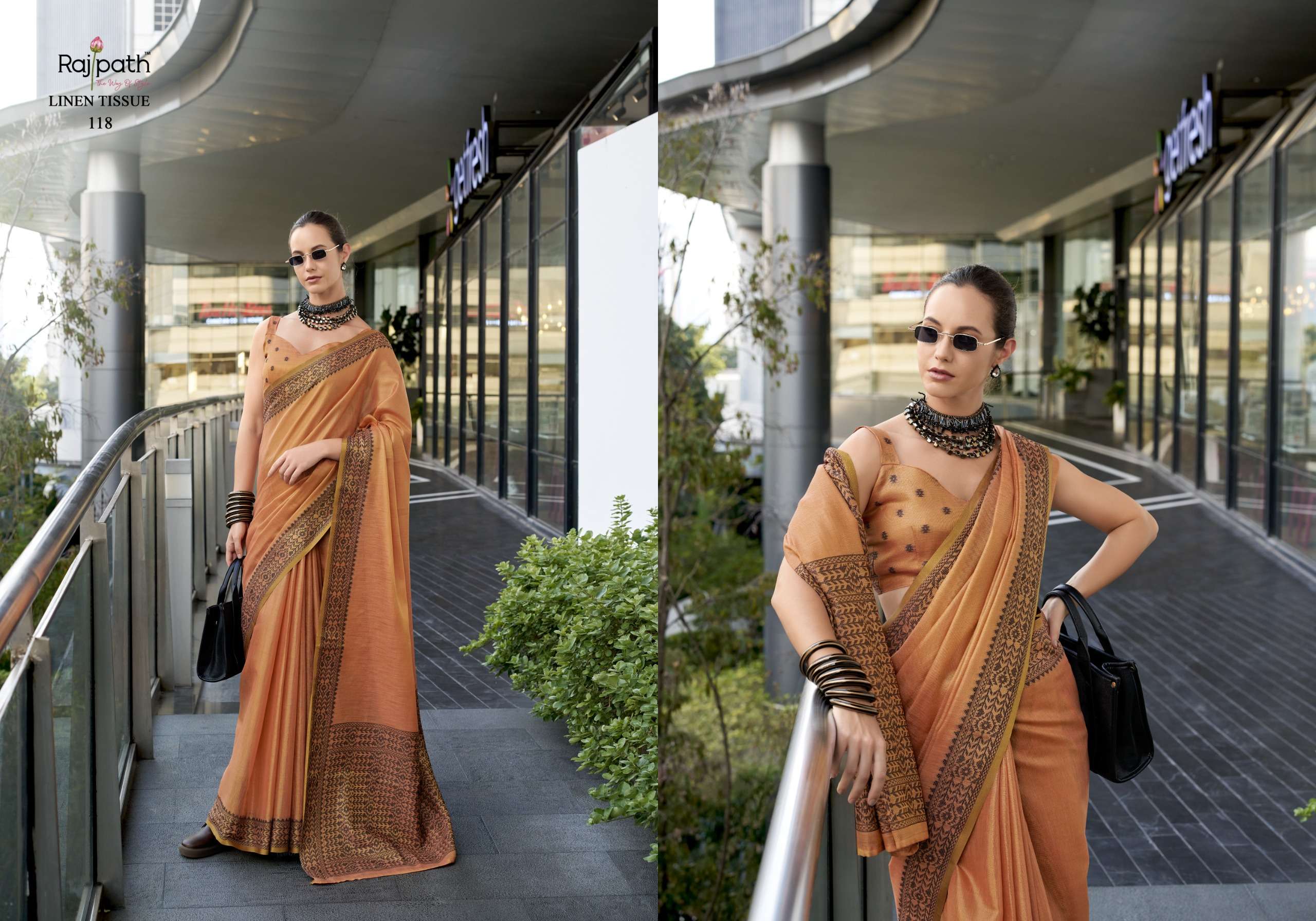 Blackberry Series 113 TO 118 by Rajpath Linen Tisuue silk saree collection manufacturer surat