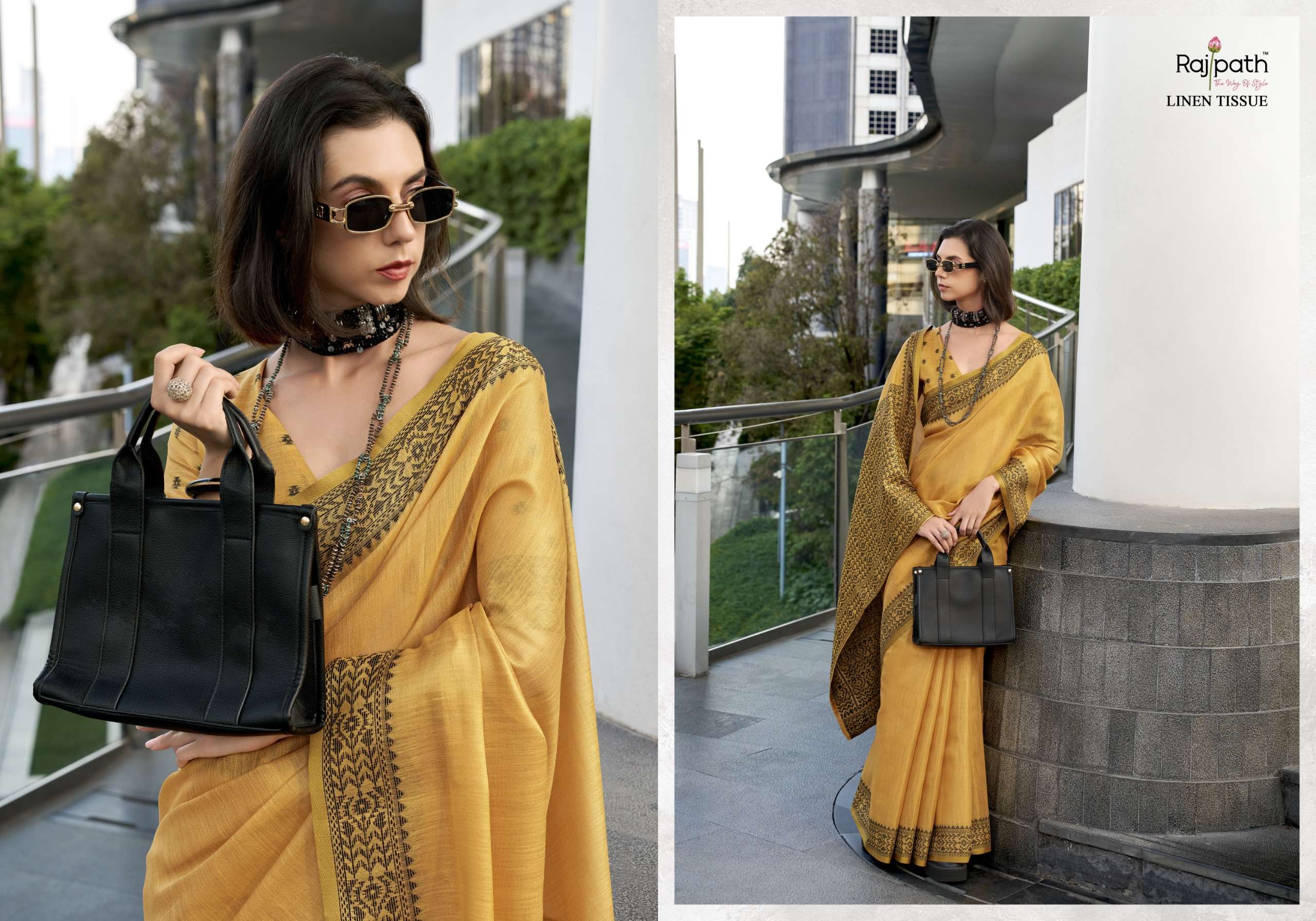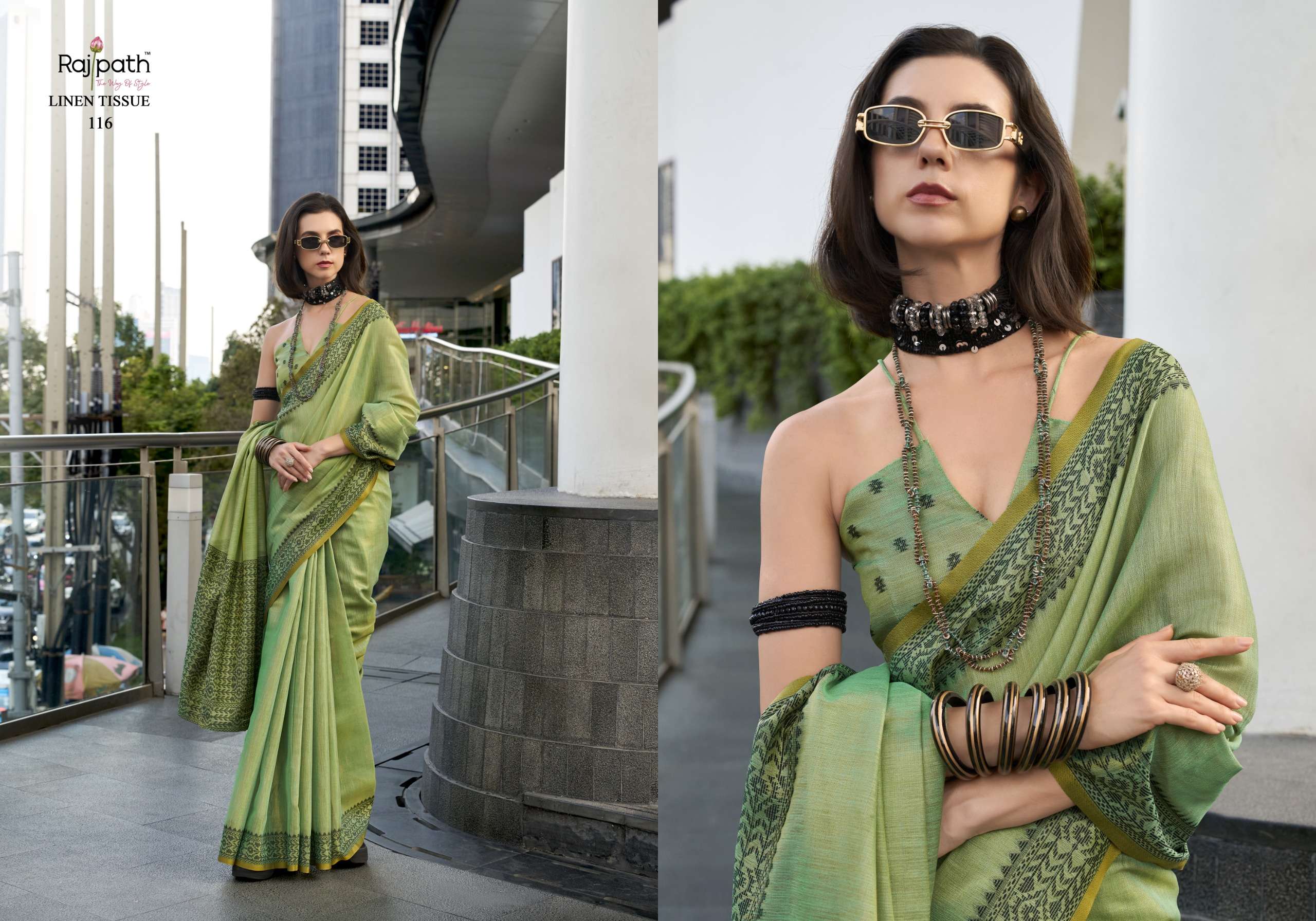 Buy Online Blackberry Series 113 TO 118 by Rajpath Linen Tisuue silk saree collection manufacturer surat 6 Pcs of Full Catalogue at Wholesale Price. Looking for Blackberry Series 113 TO 118 by Rajpath Linen Tisuue silk saree collection manufacturer surat Full Catalouge at Best Price? Buy Now Blackberry Series 113 TO 118 by Rajpath Linen Tisuue silk saree collection manufacturer surat at Wholesale Rate of Rs 7194 with Total 6 Pcs from authroized dealer and supplier of Rajpath Fabric Brand. Cost of Each piece is just only Rs 1199 which is very low and affordable price to resale the product in your retail store ,This is Surat based Wholesale Supplier & Dealer of Rajpath Fabric Brand. Click on Brand name to Know more about Rajpath Fabric Brand's products.Call or Whatsapp on 9898838984 for booking or enquiry