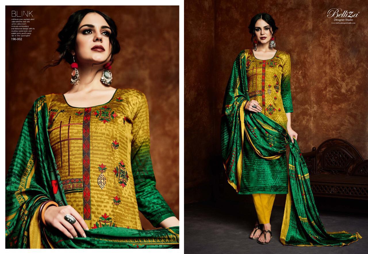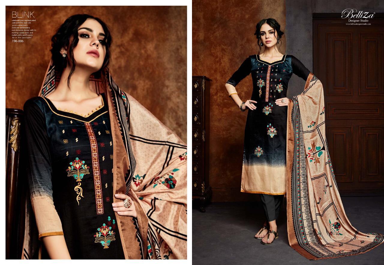 Buy Online Blink By Belliza Designer Studio 001 Series Fancy Jam Silk Digital Printed Salwar Kameez Catlog Wholesale Dealer Surat 10 Pcs of Full Catalogue at Wholesale Price. Looking for Blink By Belliza Designer Studio 001 Series Fancy Jam Silk Digital Printed Salwar Kameez Catlog Wholesale Dealer Surat Full Catalouge at Best Price? Buy Now Blink By Belliza Designer Studio 001 Series Fancy Jam Silk Digital Printed Salwar Kameez Catlog Wholesale Dealer Surat at Wholesale Rate of Rs 6950 with Total 10 Pcs from authroized dealer and supplier of Belliza Designer studio Brand. Cost of Each piece is just only Rs 695 which is very low and affordable price to resale the product in your retail store ,This is Surat based Wholesale Supplier & Dealer of Belliza Designer studio Brand. Click on Brand name to Know more about Belliza Designer studio Brand's products.Call or Whatsapp on 9898838984 for booking or enquiry