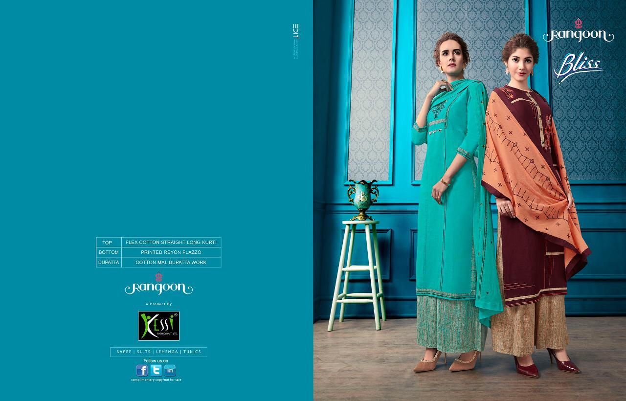 Buy Online Bliss By Rangoon Series 2231 To 2238 Cotton Designer Ready To Plazzo Suits Wholesale Supplier Gujarat 8 Pcs of Full Catalogue at Wholesale Price. Looking for Bliss By Rangoon Series 2231 To 2238 Cotton Designer Ready To Plazzo Suits Wholesale Supplier Gujarat Full Catalouge at Best Price? Buy Now Bliss By Rangoon Series 2231 To 2238 Cotton Designer Ready To Plazzo Suits Wholesale Supplier Gujarat at Wholesale Rate of Rs 7192 with Total 8 Pcs from authroized dealer and supplier of RANGOON Brand. Cost of Each piece is just only Rs 899 which is very low and affordable price to resale the product in your retail store ,This is Surat based Wholesale Supplier & Dealer of RANGOON Brand. Click on Brand name to Know more about RANGOON Brand's products.Call or Whatsapp on 9898838984 for booking or enquiry