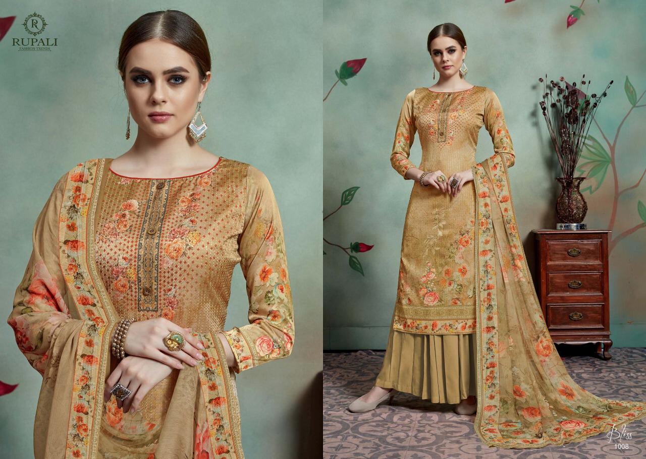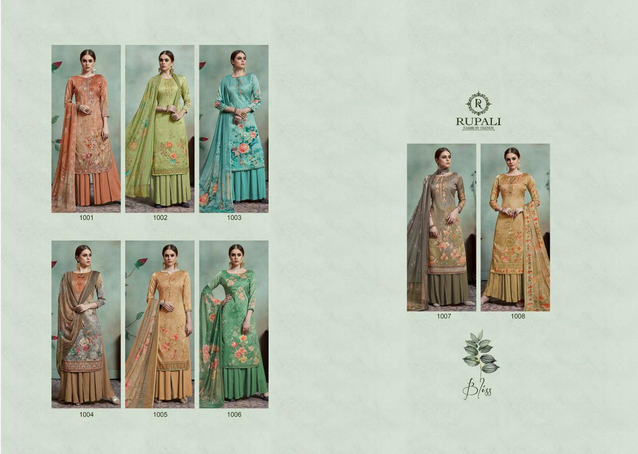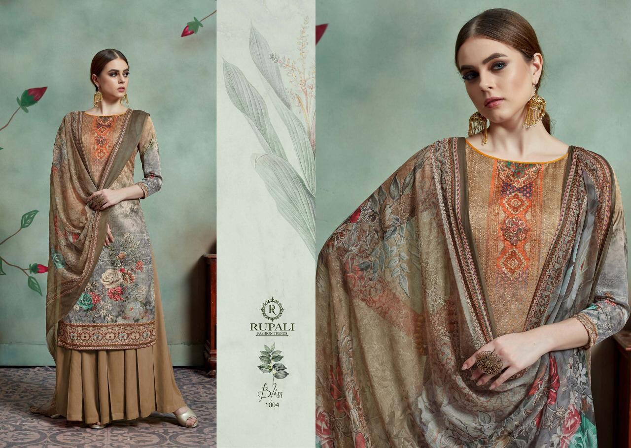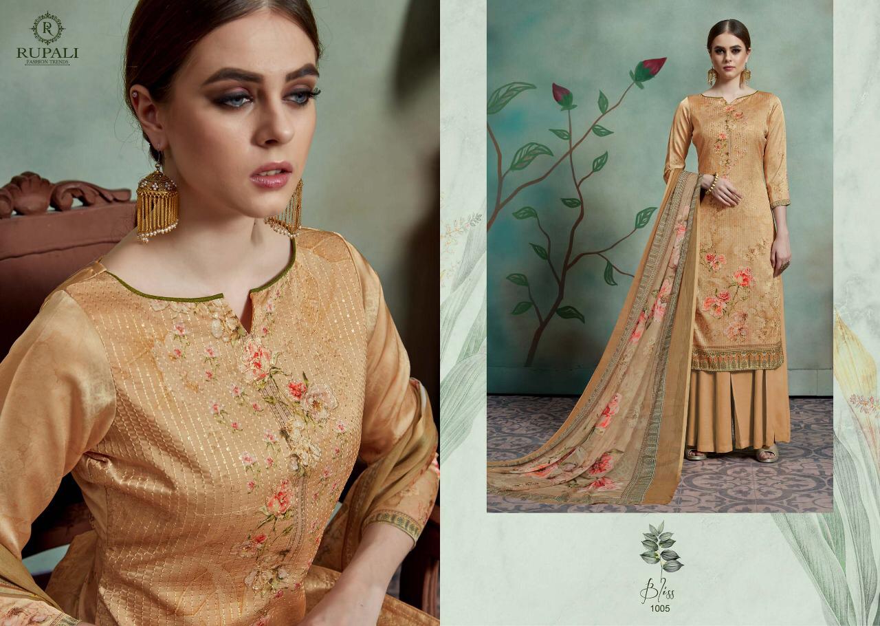 Buy Online Bliss By Rupali Fashion Model Satin Printed Suits Wholesale Supplier Surat 8 Pcs of Full Catalogue at Wholesale Price. Looking for Bliss By Rupali Fashion Model Satin Printed Suits Wholesale Supplier Surat Full Catalouge at Best Price? Buy Now Bliss By Rupali Fashion Model Satin Printed Suits Wholesale Supplier Surat at Wholesale Rate of Rs 11000 with Total 8 Pcs from authroized dealer and supplier of Brand. Cost of Each piece is just only Rs 1375 which is very low and affordable price to resale the product in your retail store ,This is Surat based Wholesale Supplier & Dealer of Brand. Click on Brand name to Know more about Brand's products.Call or Whatsapp on 9898838984 for booking or enquiry