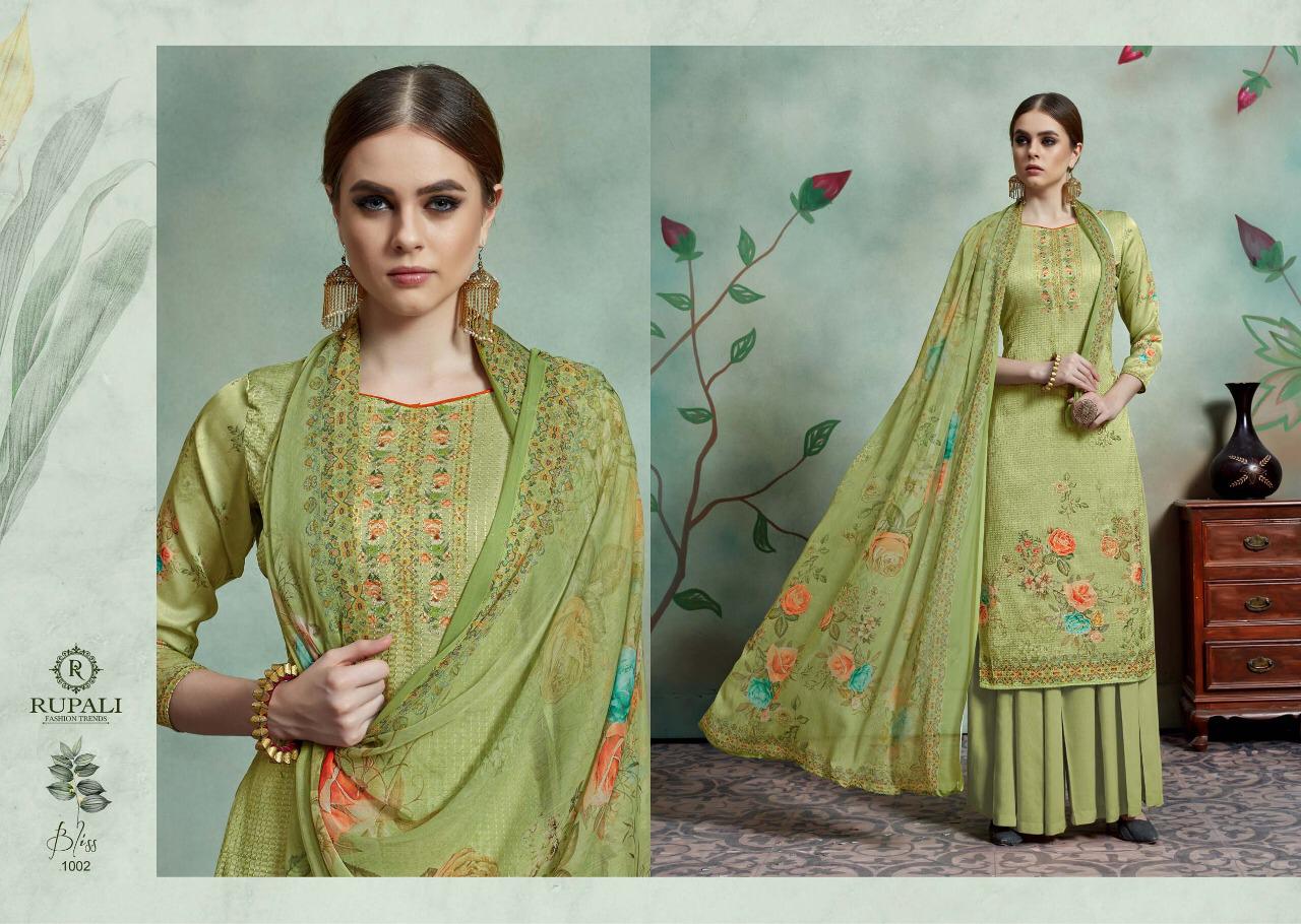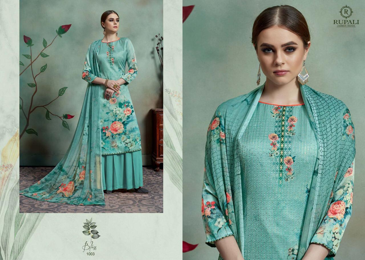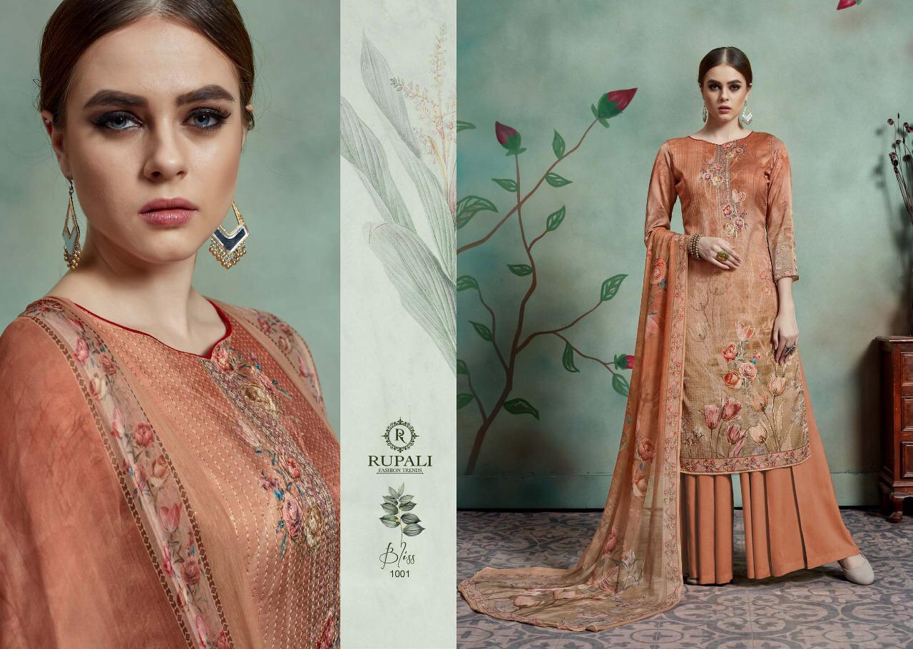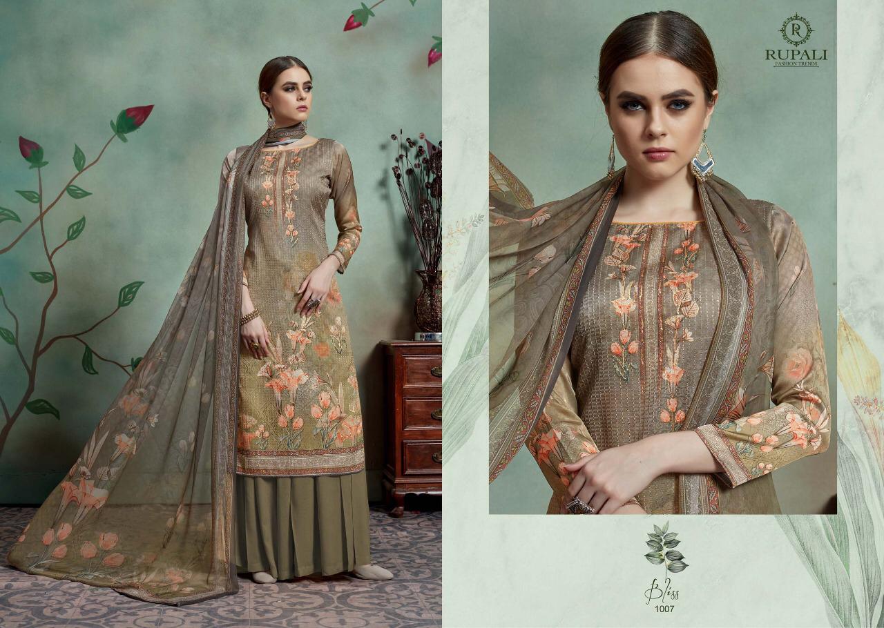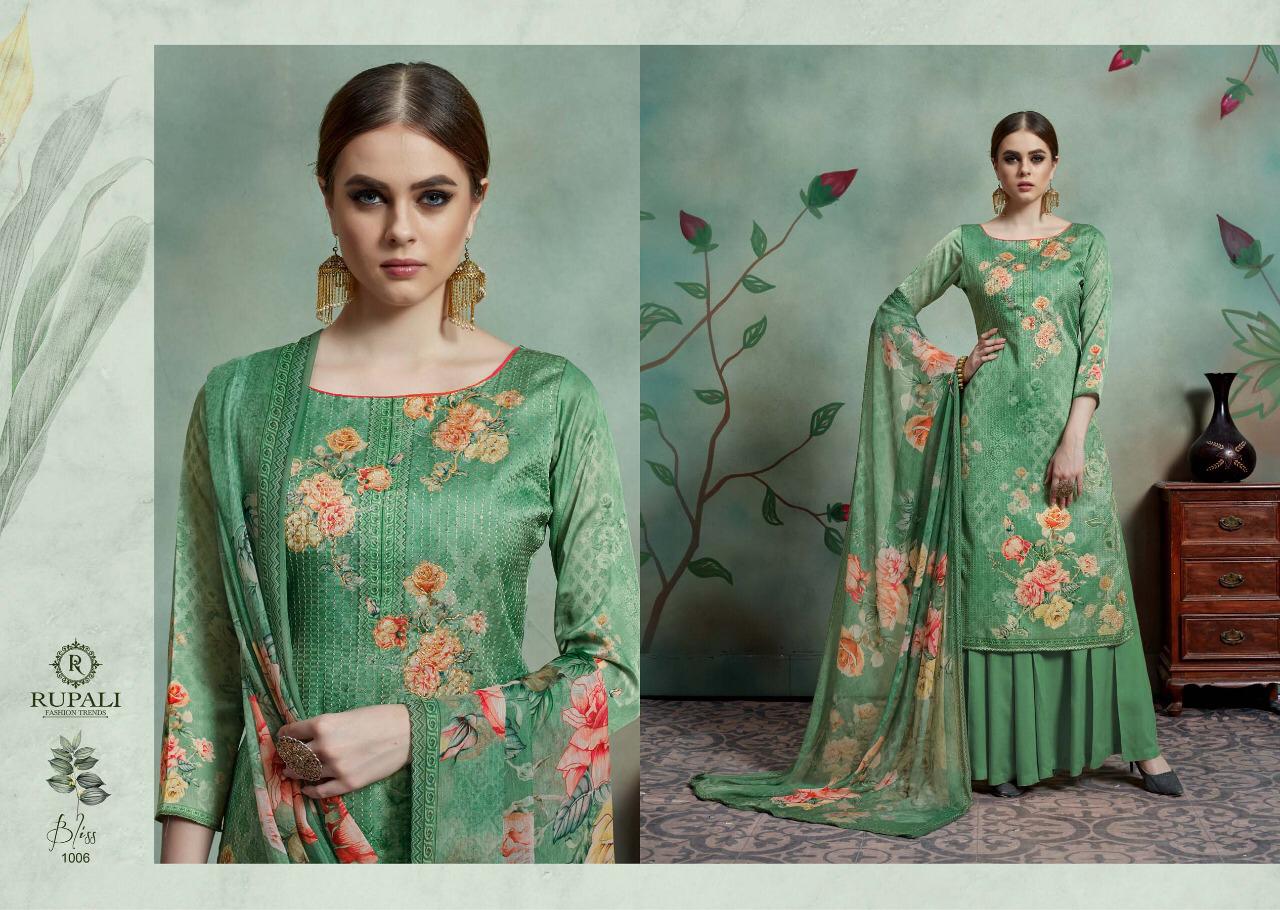 Buy Online Bliss By Rupali Fashion Model Satin Printed Suits Wholesale Supplier Surat 8 Pcs of Full Catalogue at Wholesale Price. Looking for Bliss By Rupali Fashion Model Satin Printed Suits Wholesale Supplier Surat Full Catalouge at Best Price? Buy Now Bliss By Rupali Fashion Model Satin Printed Suits Wholesale Supplier Surat at Wholesale Rate of Rs 11000 with Total 8 Pcs from authroized dealer and supplier of Brand. Cost of Each piece is just only Rs 1375 which is very low and affordable price to resale the product in your retail store ,This is Surat based Wholesale Supplier & Dealer of Brand. Click on Brand name to Know more about Brand's products.Call or Whatsapp on 9898838984 for booking or enquiry
