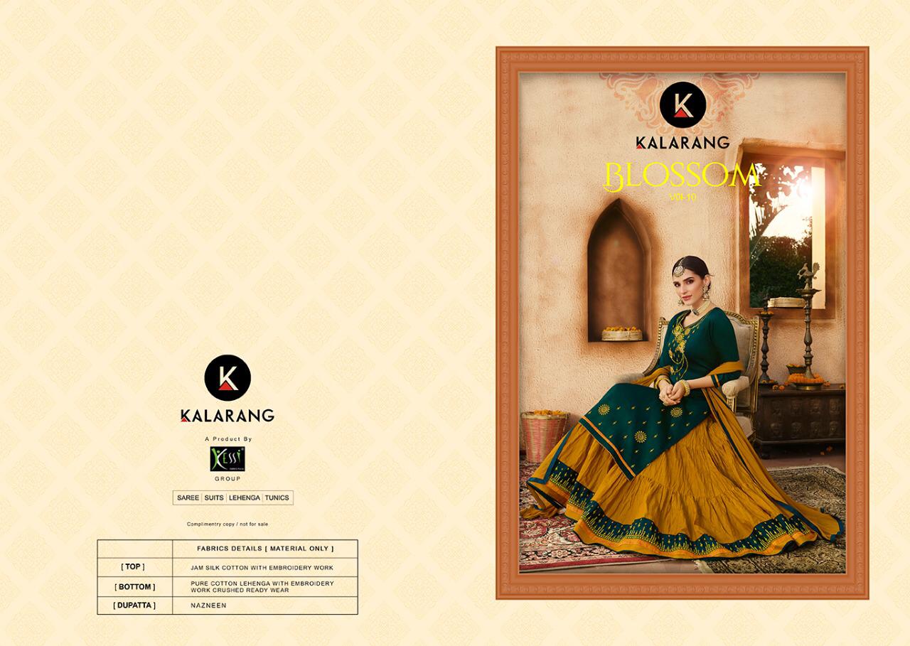 ? *Kalarang.* has launched _Catalog name_ : *BLOSSOM VOL - 10* ? _Fabric Details_ ? ?Top:- JAM SILK COTTON WITH WORK ?Bottom:- PURE COTTON LEHENGA WITH WORK CRUSHED READYWEAR ?Dupatta:- NAZNEEN ?Total Design:- 4 Rate -899 per pcs . Set to set . GST 5 Percent Extra ?Dispatching 5 to 6 days later ?Booking started from now... ?Order yours soon.... |