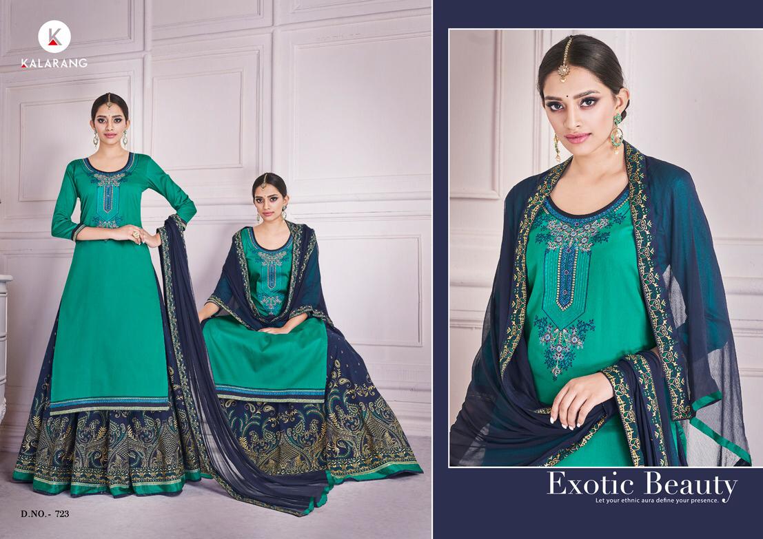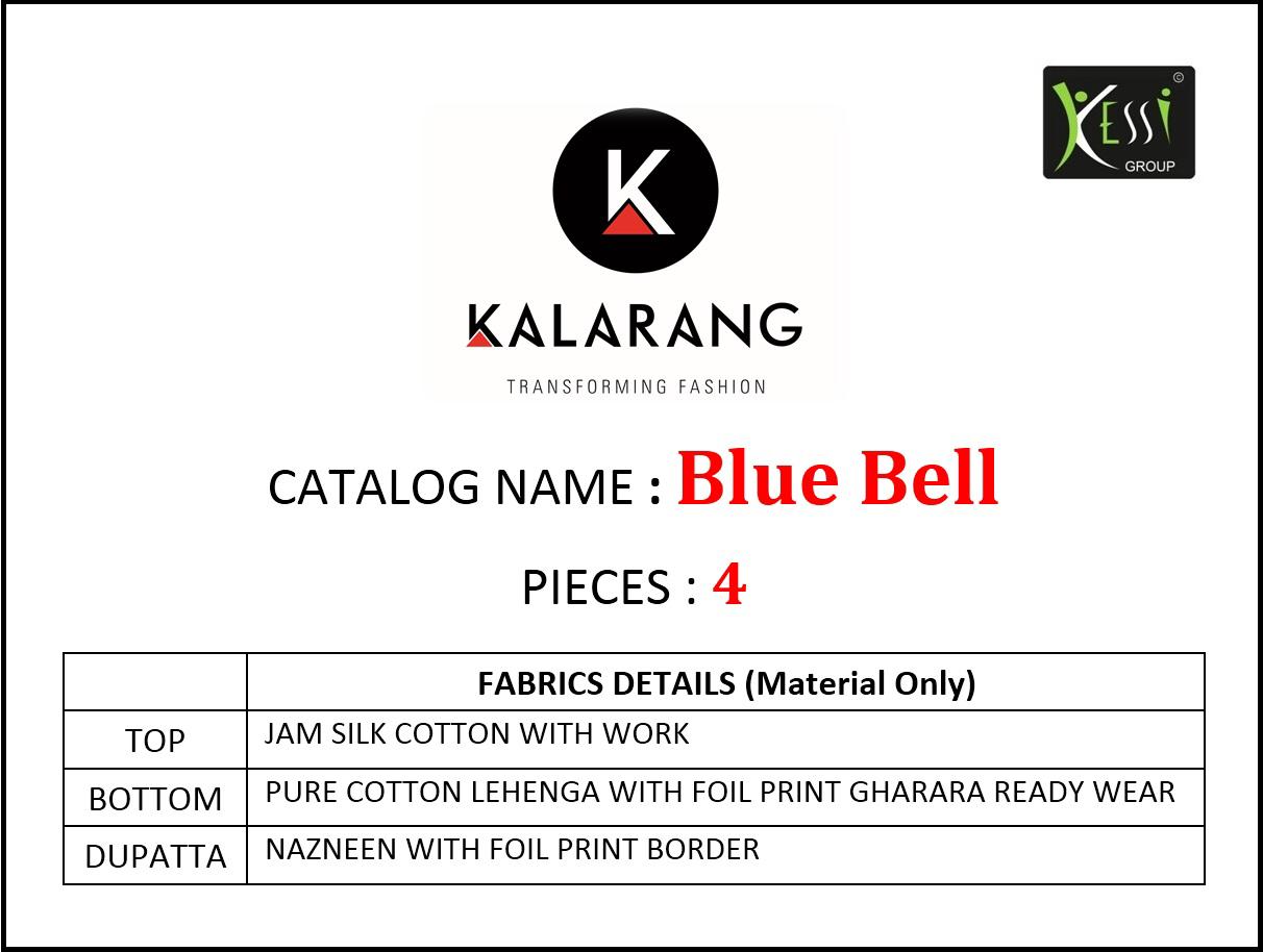 ? *Kalarang.* has launched _Catalog name_ : *Blue Bell* ? _Fabric Details_ ? ?Top :- JAM SILK COTTON WITH WORK ?Bottom:- PURE COTTON LEHENGA WITH FOIL PRINT GHARARA READY WEAR ?Dupatta:- NAZNEEN WITH FOIL PRINT BORDER ?Total Design :- 4 Rate 925 per Pcs . Set To setS GST 5 Percent Extra ?Dispatching 5 to 6 days later ?Booking started from now... ?Order yours soon.... |