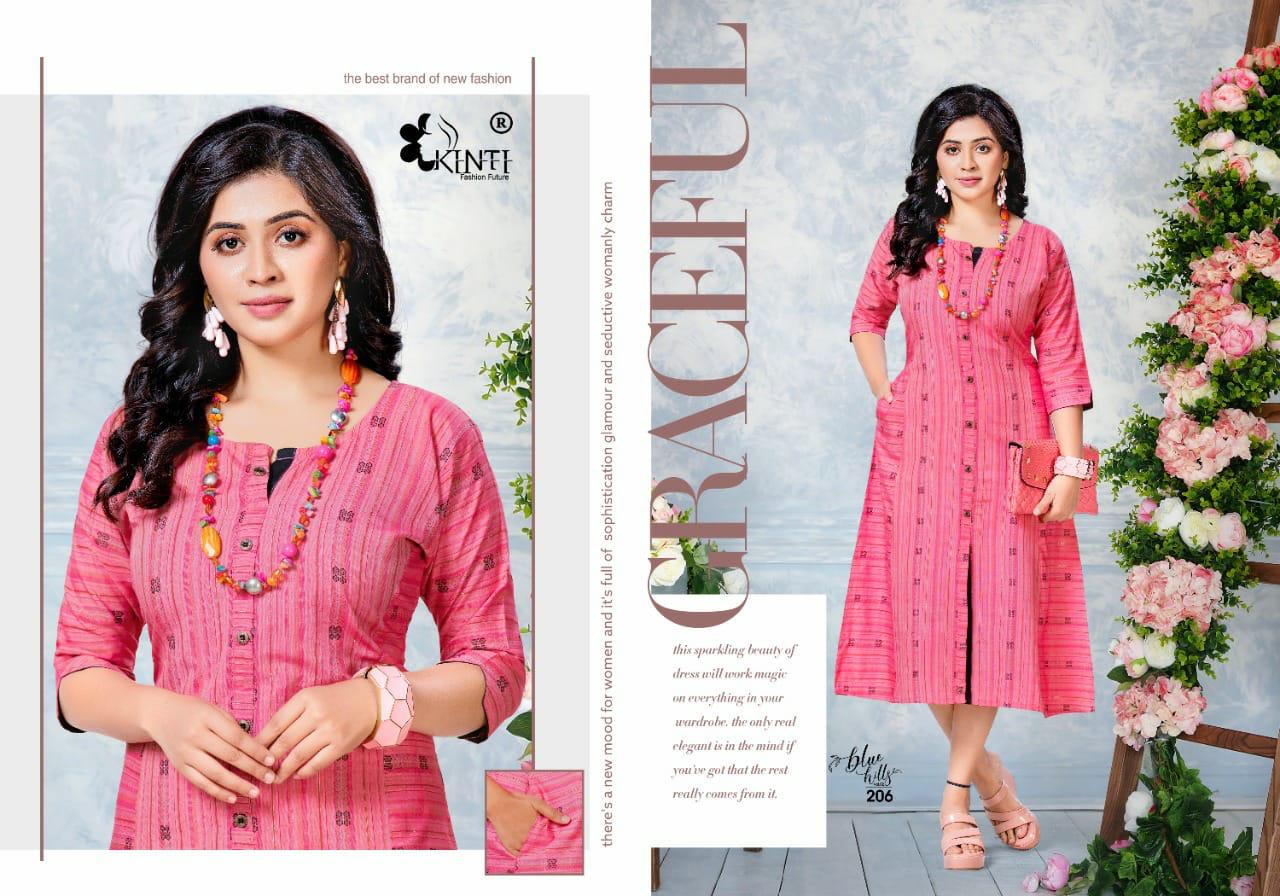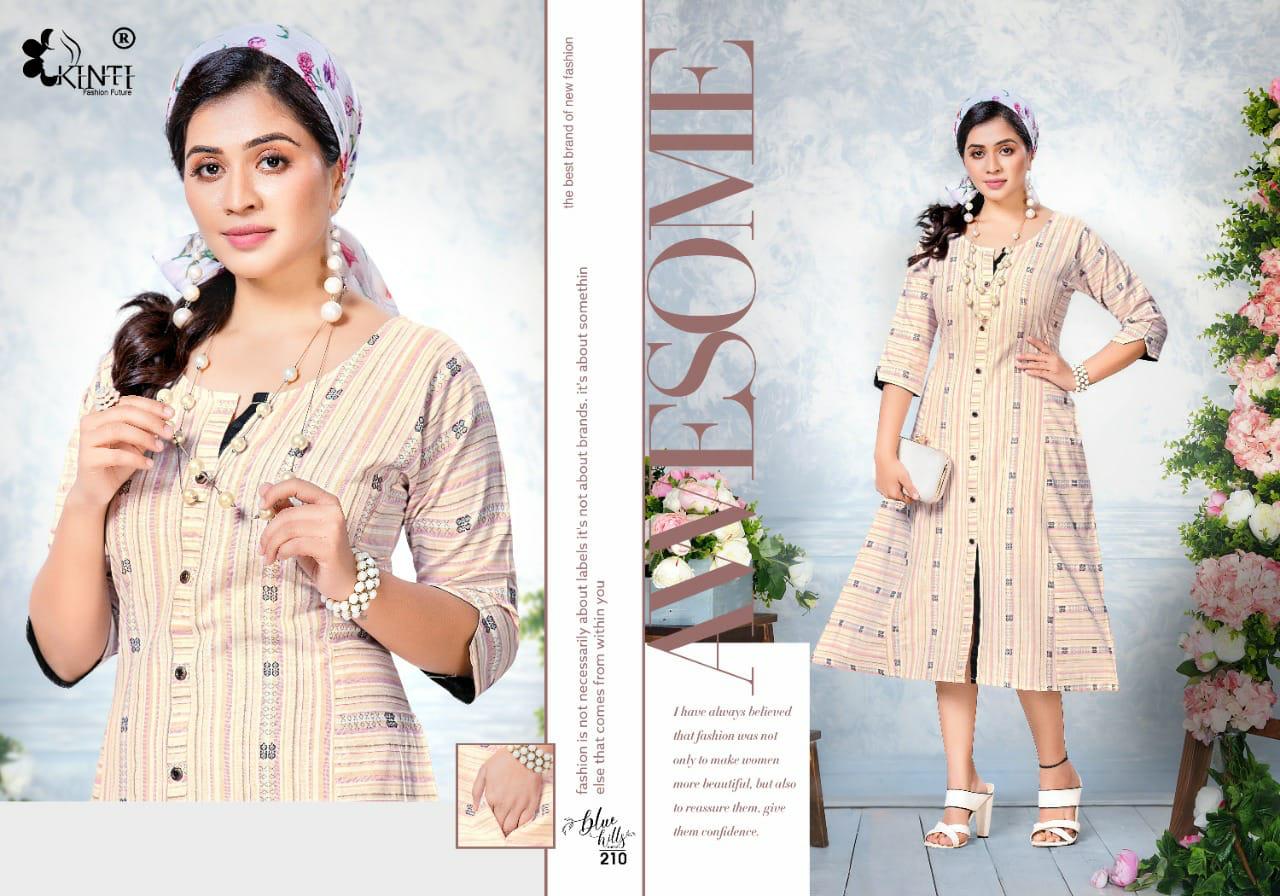 *Blue hills By *Kinti* ®? ( Kurti with *SIDE POCKET* ) Fabric. : *Handloom Weaving Strips* Style. : *Princess Cut* *Side Pocket* Sleeves. : *3/4 sleeves* Length. : *45 (Approx)* Sizes : *S M L XL XXL 3xl* Colors : *10* *Rate :- 255 + GST* |
