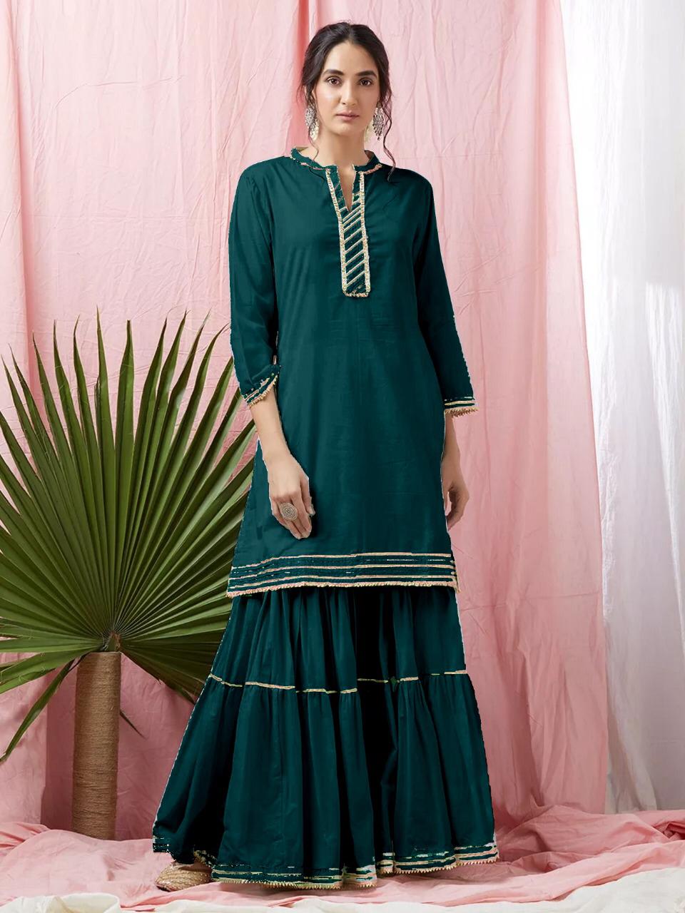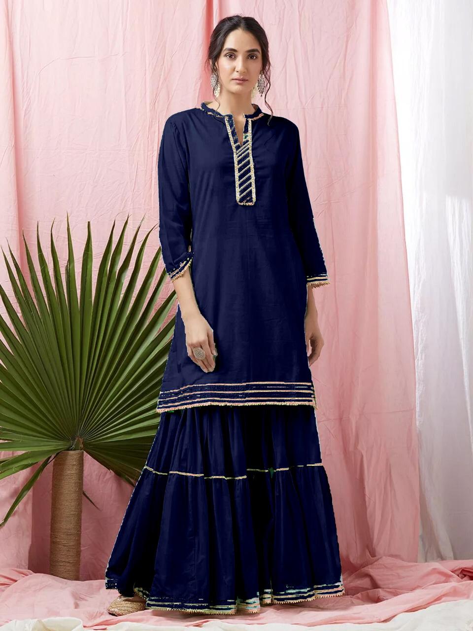 Blue Hills By Vf Sharara Plazzo And Top With Gotta Patti Border