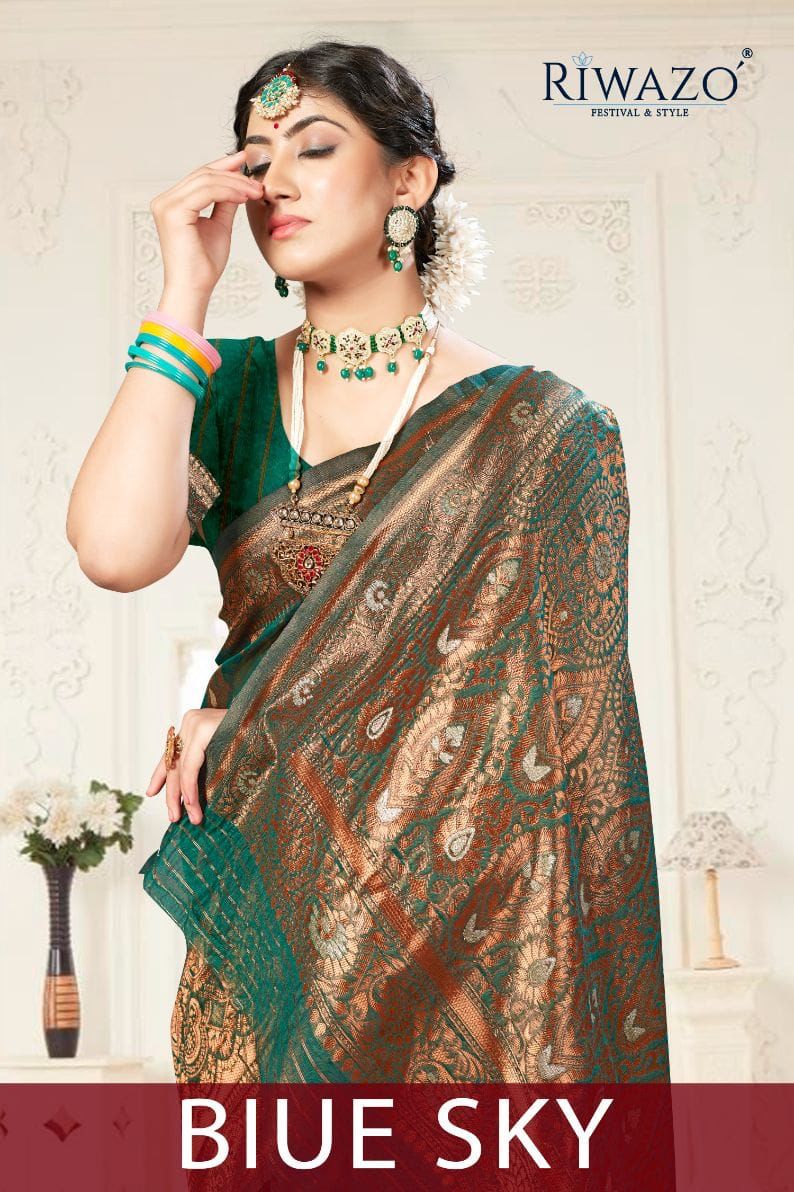Buy Online Blue Sky By Riwazo Organza Zari Work Collection 6 Pcs of Full Catalogue at Wholesale Price. Looking for Blue Sky By Riwazo Organza Zari Work Collection Full Catalouge at Best Price? Buy Now Blue Sky By Riwazo Organza Zari Work Collection at Wholesale Rate of Rs 3600 with Total 6 Pcs from authroized dealer and supplier of Brand. Cost of Each piece is just only Rs 600 which is very low and affordable price to resale the product in your retail store ,This is Surat based Wholesale Supplier & Dealer of Brand. Click on Brand name to Know more about Brand's products.Call or Whatsapp on 9898838984 for booking or enquiry