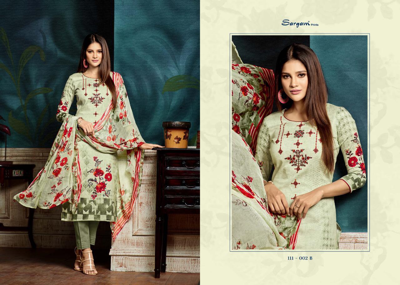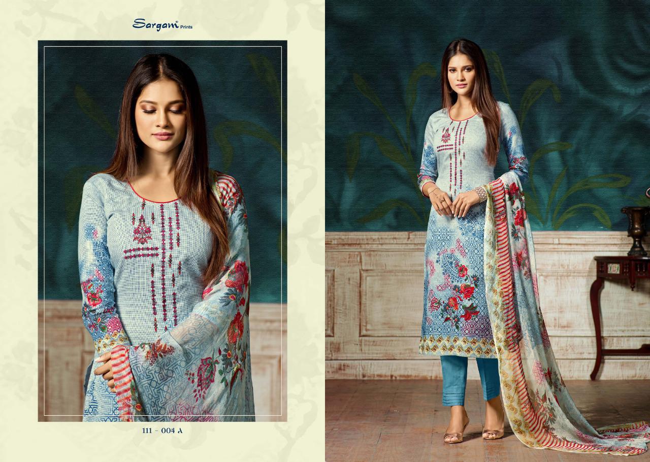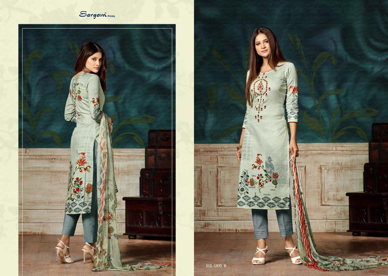 Buy Online Bluebell By Sargam Prints 111001 Series Fancy Pure Jam Printed Salwar Kameez Catlog Wholesaler Surat 8 Pcs of Full Catalogue at Wholesale Price. Looking for Bluebell By Sargam Prints 111001 Series Fancy Pure Jam Printed Salwar Kameez Catlog Wholesaler Surat Full Catalouge at Best Price? Buy Now Bluebell By Sargam Prints 111001 Series Fancy Pure Jam Printed Salwar Kameez Catlog Wholesaler Surat at Wholesale Rate of Rs 7160 with Total 8 Pcs from authroized dealer and supplier of SARGAM PRINTS Brand. Cost of Each piece is just only Rs 895 which is very low and affordable price to resale the product in your retail store ,This is Surat based Wholesale Supplier & Dealer of SARGAM PRINTS Brand. Click on Brand name to Know more about SARGAM PRINTS Brand's products.Call or Whatsapp on 9898838984 for booking or enquiry