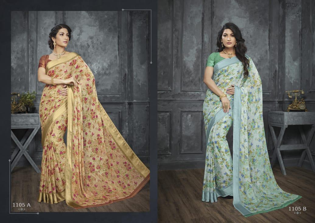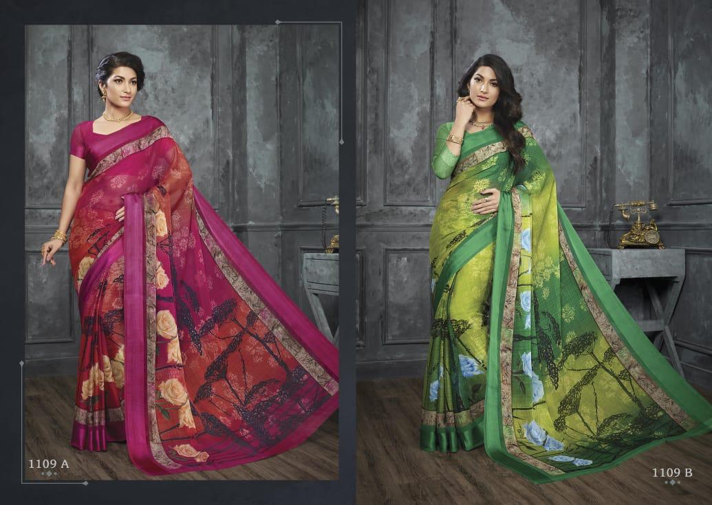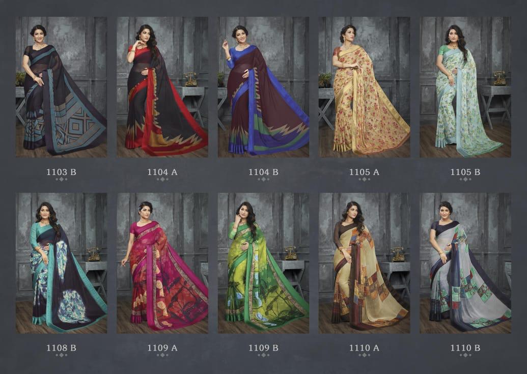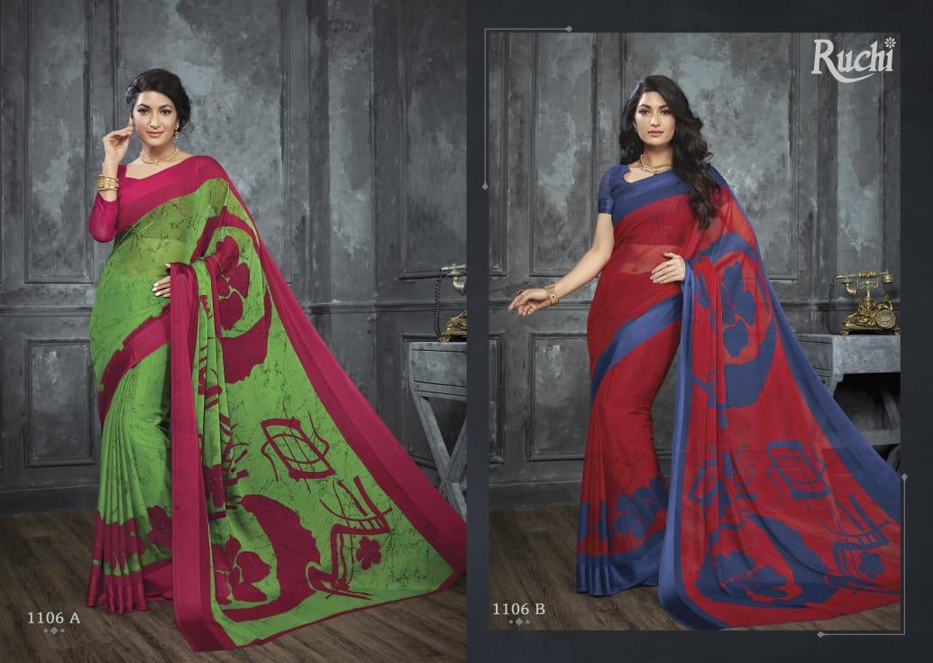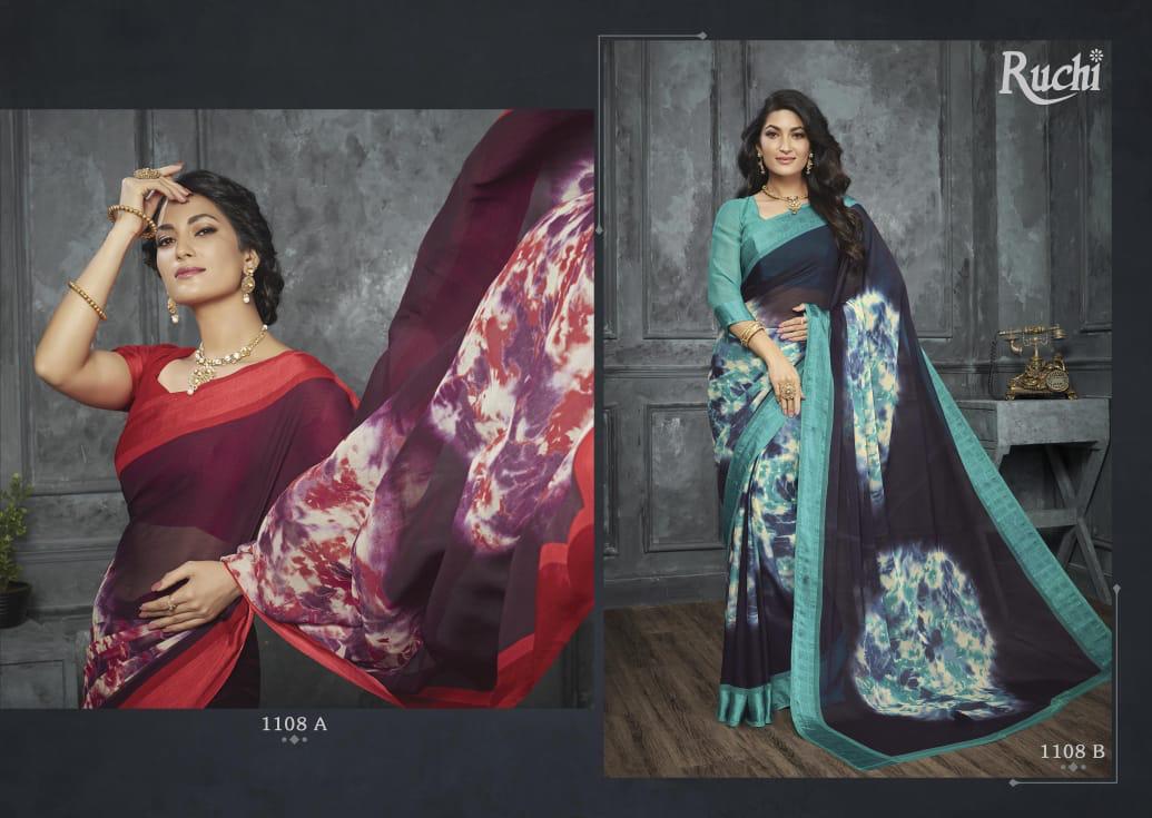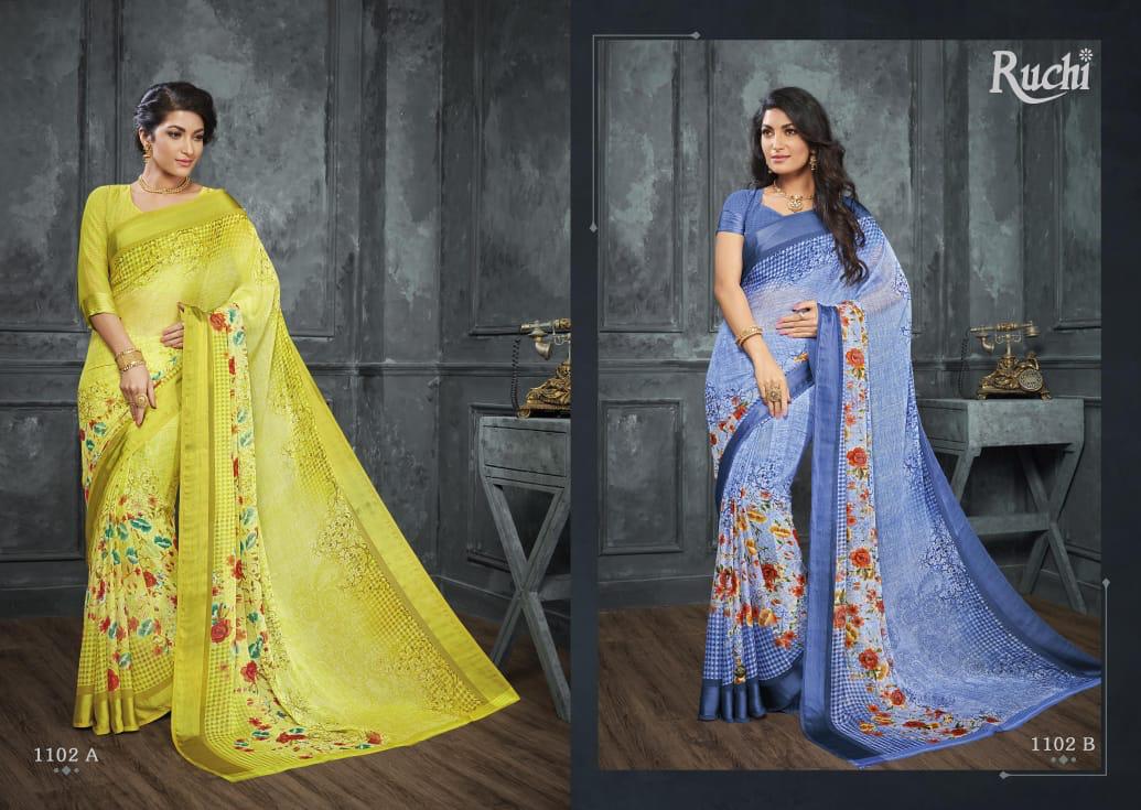 Buy Online Blueberry By Ruchi 1101 Series Fancy Chiffon Satin Printed Saree Collection Wholesaler Surat 20 Pcs of Full Catalogue at Wholesale Price. Looking for Blueberry By Ruchi 1101 Series Fancy Chiffon Satin Printed Saree Collection Wholesaler Surat Full Catalouge at Best Price? Buy Now Blueberry By Ruchi 1101 Series Fancy Chiffon Satin Printed Saree Collection Wholesaler Surat at Wholesale Rate of Rs 9000 with Total 20 Pcs from authroized dealer and supplier of RUCHI SAREE Brand. Cost of Each piece is just only Rs 450 which is very low and affordable price to resale the product in your retail store ,This is Surat based Wholesale Supplier & Dealer of RUCHI SAREE Brand. Click on Brand name to Know more about RUCHI SAREE Brand's products.Call or Whatsapp on 9898838984 for booking or enquiry