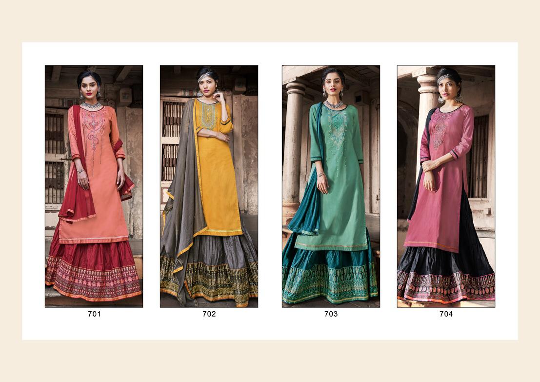? *Kalarang.* has launched _Catalog name_ : *Blueberry Vol - 3* ? _Fabric Details_ ? ?Top :- JAM SILK COTTON WITH WORK ?Bottom:- PURE COTTON LEHENGA WITH FOIL PRINT BORDER WITH CRUSHED READYWEAR ?Dupatta:- NAZNEEN ?Total Design :- 4 ?Dispatching 5 to 6 days later ?Booking started from now... ?Order yours soon.... Rate 899 per Pcs . Set To Set. GST 5 Percent Extra |