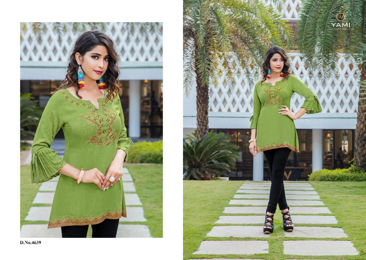 *Yami Fashion* Has Launched new Long Top Cum Tunics Catalog *BOLD 2* Name- BOLD-2 Pce-9 Fabrics- Rayon Base fabrics With Machine Embroidery Size- S-36,M-38,L40, XL42, XXL44 Lenth- 30" Approx *Rate-425*/- Set to set GST 5 Percent Extra. Delivery from tomorrow |