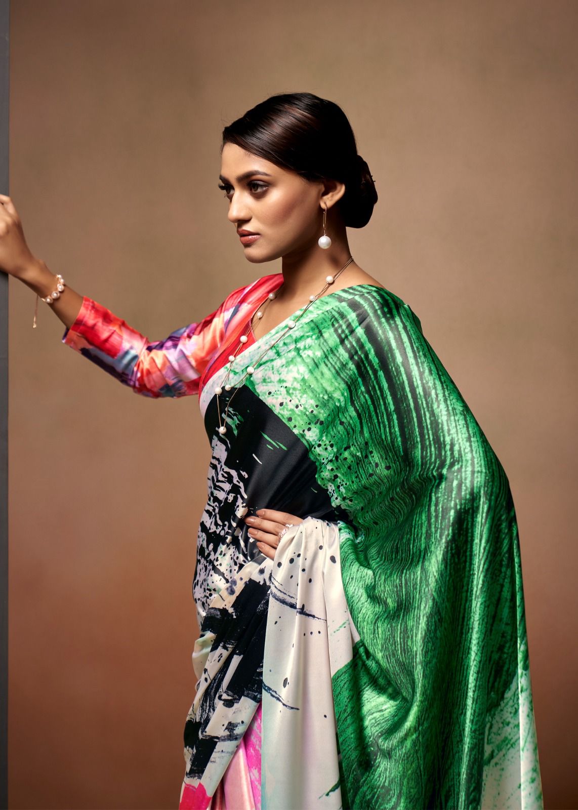 Bollywood Sattin Crape With Digital Print Saree Rajpath Fabric