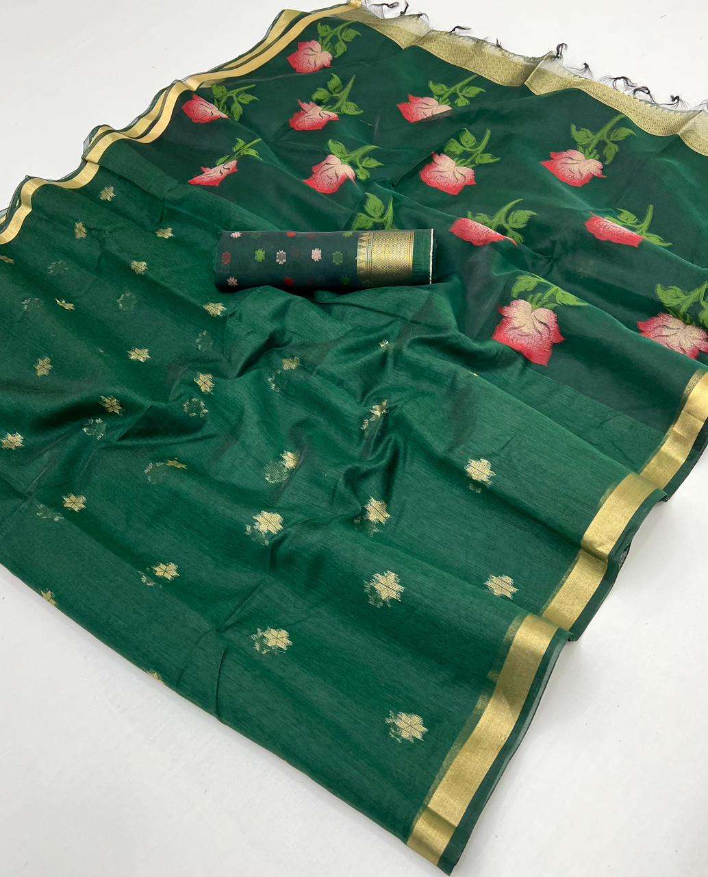 *Saree : Munga Cotton Handloom Weaving - Organza Weaving Pallu*