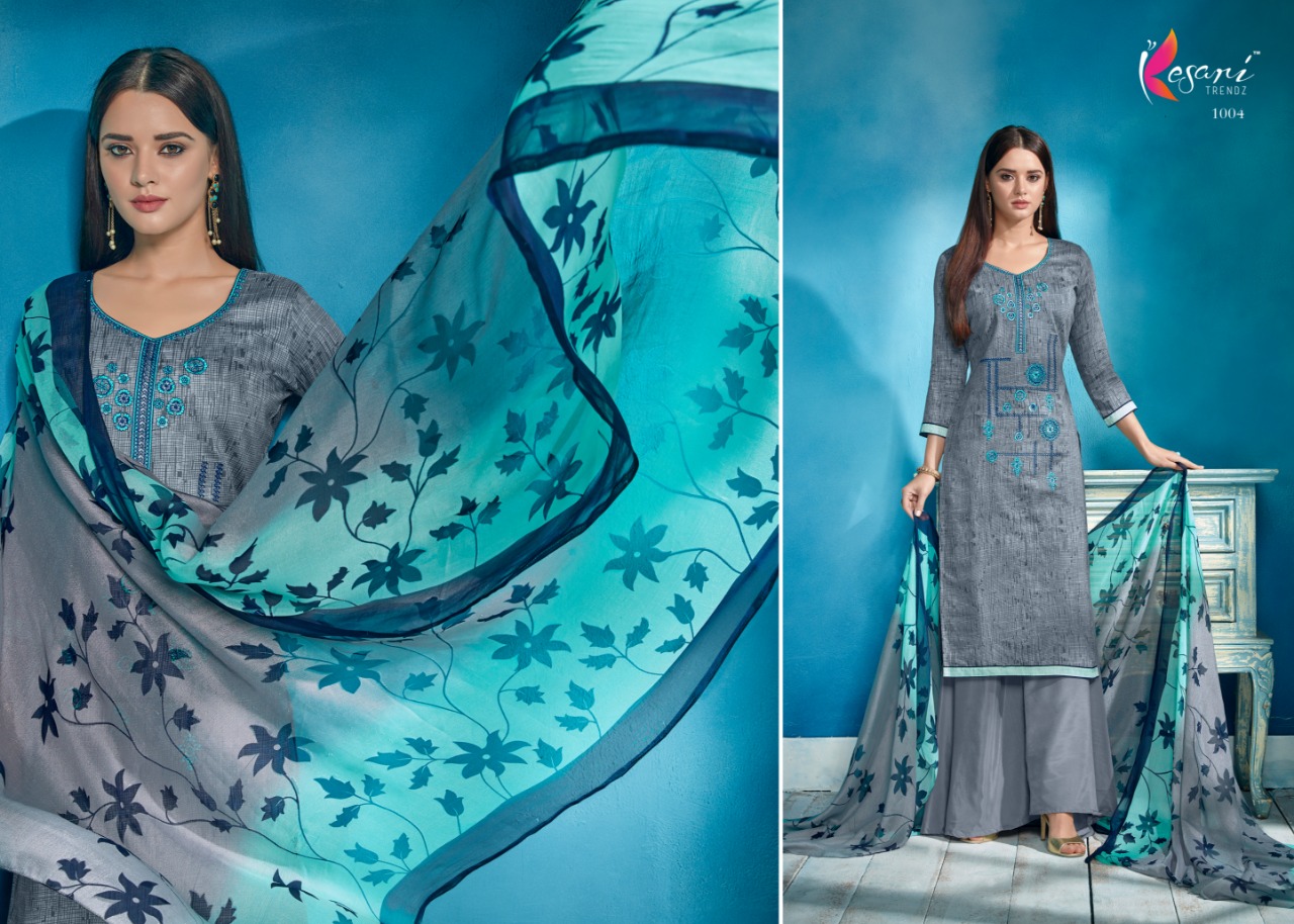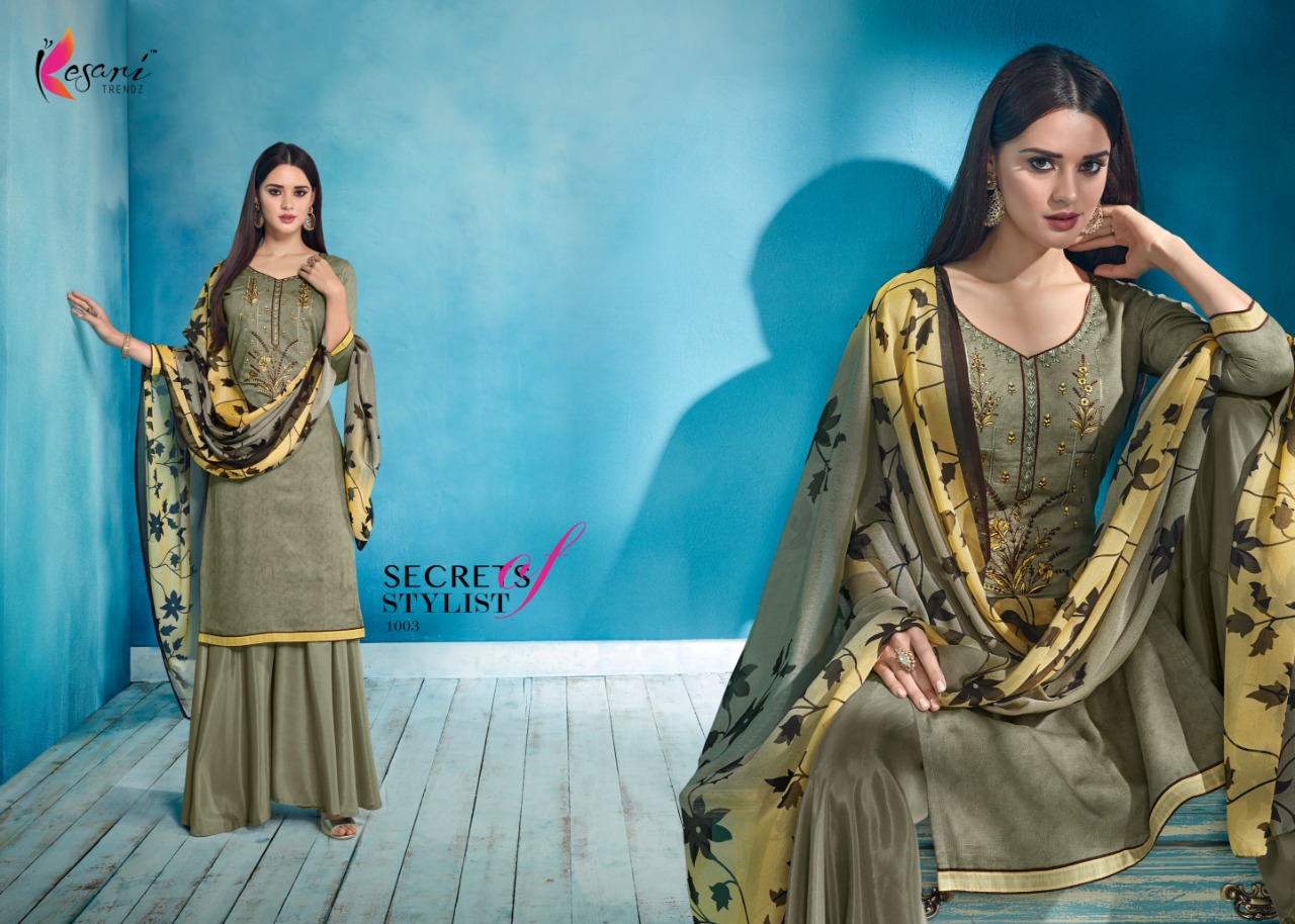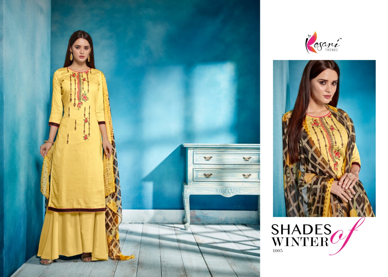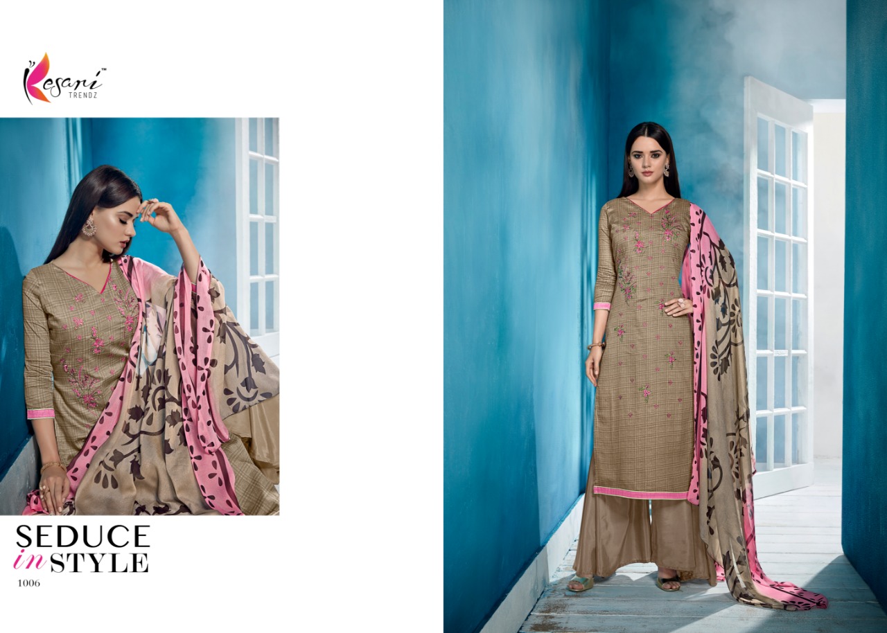 Buy Online Brasso Dupatta Vol 1 By Kesari Trendz Dress Material In 8 Designs Wholesale Dealer And Supplier Surat 8 Pcs of Full Catalogue at Wholesale Price. Looking for Brasso Dupatta Vol 1 By Kesari Trendz Dress Material In 8 Designs Wholesale Dealer And Supplier Surat Full Catalouge at Best Price? Buy Now Brasso Dupatta Vol 1 By Kesari Trendz Dress Material In 8 Designs Wholesale Dealer And Supplier Surat at Wholesale Rate of Rs 5592 with Total 8 Pcs from authroized dealer and supplier of KESARI TRENDZ Brand. Cost of Each piece is just only Rs 699 which is very low and affordable price to resale the product in your retail store ,This is Surat based Wholesale Supplier & Dealer of KESARI TRENDZ Brand. Click on Brand name to Know more about KESARI TRENDZ Brand's products.Call or Whatsapp on 9898838984 for booking or enquiry