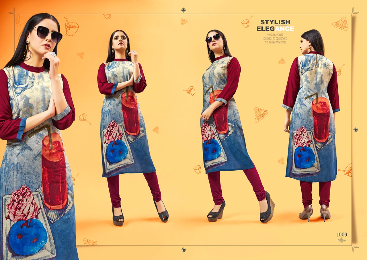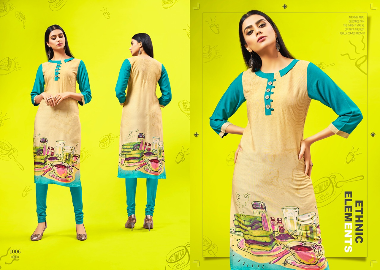 Breakfast By S More Fashion Reyon Digital Printed Kurtis Wholesale Supplier Nd Dealer Surat