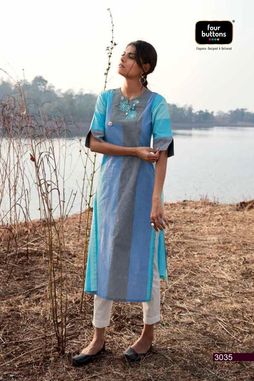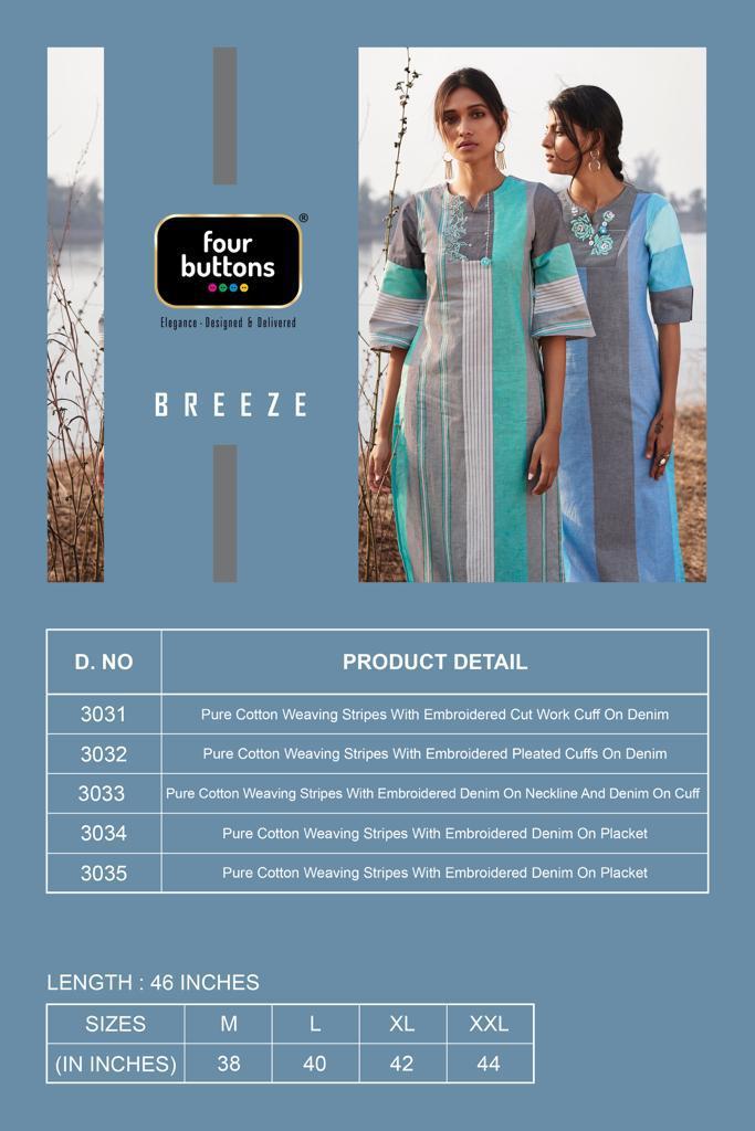 Buy Online Breeze By Four Buttons Pure Cotton Weaving Kurtis Wholesale Supplier Gujarat 5 Pcs of Full Catalogue at Wholesale Price. Looking for Breeze By Four Buttons Pure Cotton Weaving Kurtis Wholesale Supplier Gujarat Full Catalouge at Best Price? Buy Now Breeze By Four Buttons Pure Cotton Weaving Kurtis Wholesale Supplier Gujarat at Wholesale Rate of Rs 3125 with Total 5 Pcs from authroized dealer and supplier of FOUR BUTTONS Brand. Cost of Each piece is just only Rs 625 which is very low and affordable price to resale the product in your retail store ,This is Surat based Wholesale Supplier & Dealer of FOUR BUTTONS Brand. Click on Brand name to Know more about FOUR BUTTONS Brand's products.Call or Whatsapp on 9898838984 for booking or enquiry