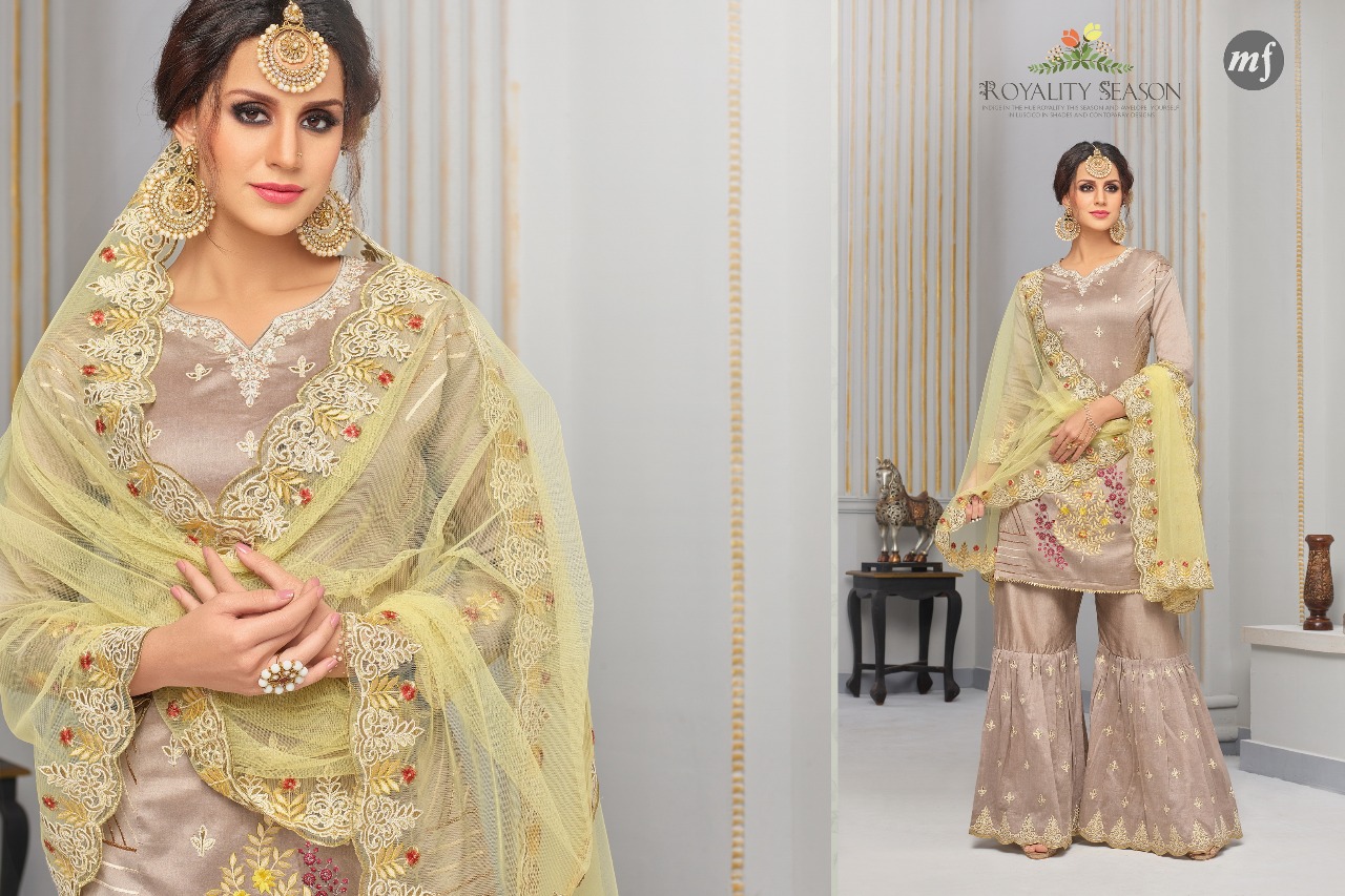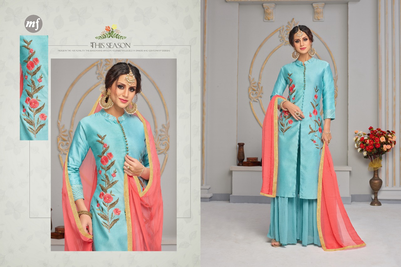 *Bridal collection by Mahaveer Fashion (MF)*................. *MASUBA* *Fabric details*?????? *Top* = *Pure maslin silk Heavy Embroidery & Heavy Handwork* *Bottam*= *Pure cotton & Foux Georgette (Plazzo stiched Free Size* *Dupatta*= *Heavy Nett Dupatta Work* *Designs* = *3 pcs* *Price*= *1295/-* GST and Shipping Extra For single piece call or whatsapp on +919898838984 |