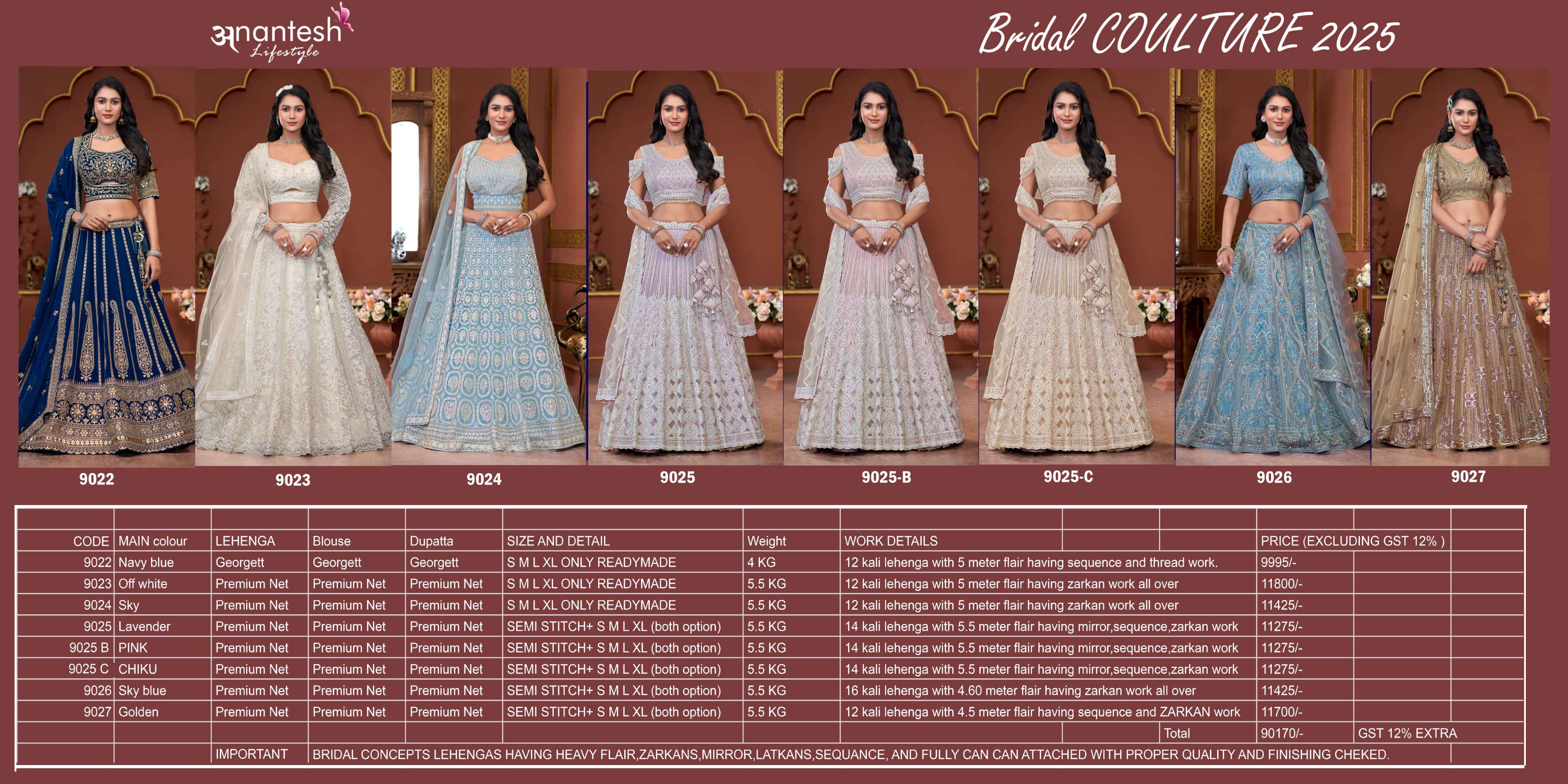 Bridal coulture 2025 SERIES 9022 TO 9027 by ANANTESH LIFESTYLE lehenga choli collection manufacturer surat