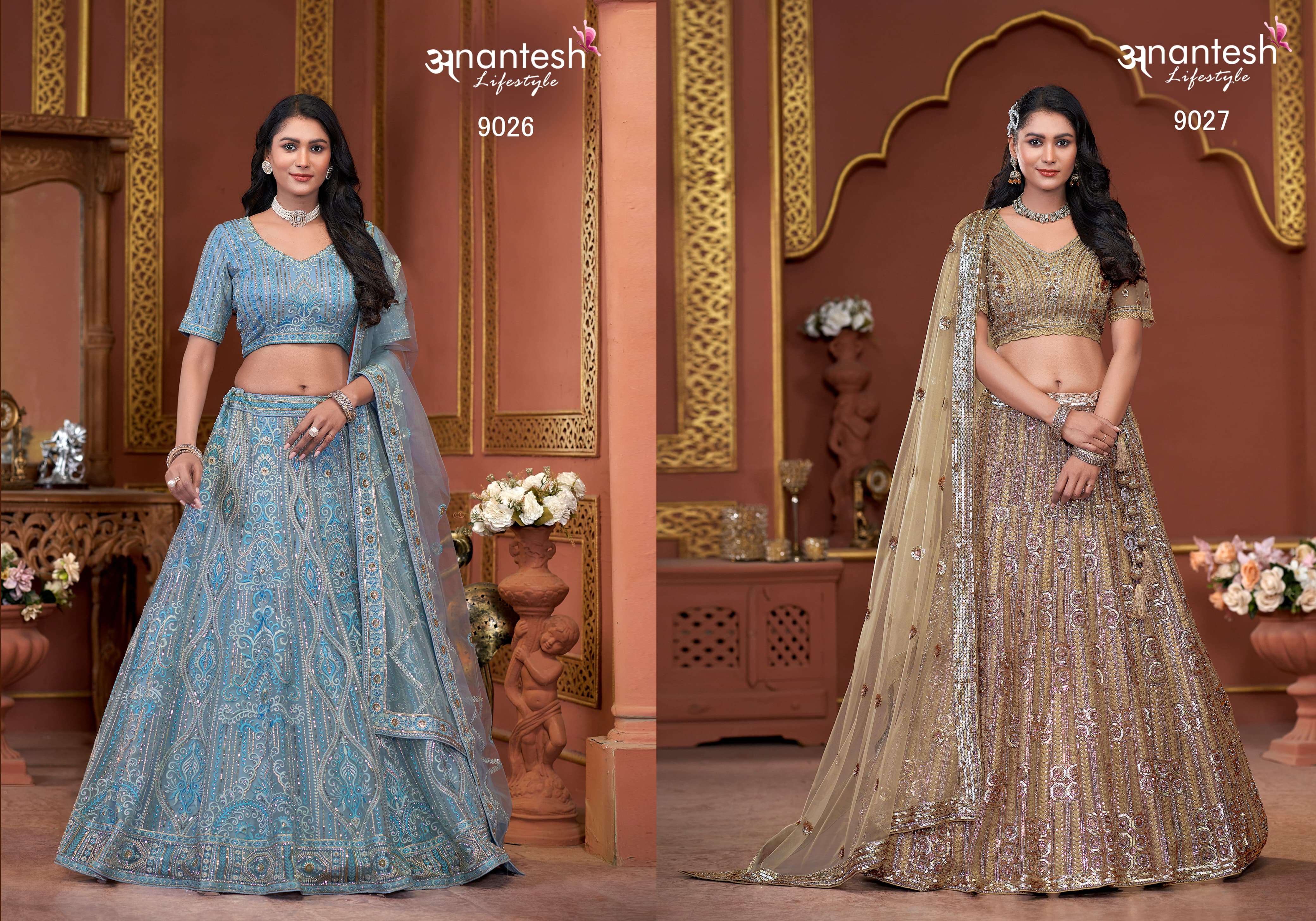 Buy Online Bridal coulture 2025 SERIES 9022 TO 9027 by ANANTESH LIFESTYLE lehenga choli collection manufacturer surat 8 Pcs of Full Catalogue at Wholesale Price. Looking for Bridal coulture 2025 SERIES 9022 TO 9027 by ANANTESH LIFESTYLE lehenga choli collection manufacturer surat Full Catalouge at Best Price? Buy Now Bridal coulture 2025 SERIES 9022 TO 9027 by ANANTESH LIFESTYLE lehenga choli collection manufacturer surat at Wholesale Rate of Rs 0 with Total 8 Pcs from authroized dealer and supplier of Anantesh Lifestyle Brand. Cost of Each piece is just only Rs 0 which is very low and affordable price to resale the product in your retail store ,This is Surat based Wholesale Supplier & Dealer of Anantesh Lifestyle Brand. Click on Brand name to Know more about Anantesh Lifestyle Brand's products.Call or Whatsapp on 9898838984 for booking or enquiry