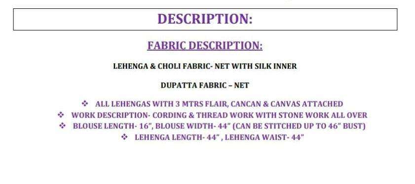 | Note | Stitching available on customer Requirment For Sarees , Salwar Kameez, Lehengha.(i.e M,L,XL,XXL). |
