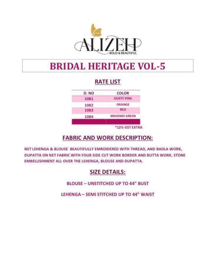 BRIDAL HERITAGE VOL 5 by ALIZEH OFFICIAL Net lehenga choli collection manufacturer surat