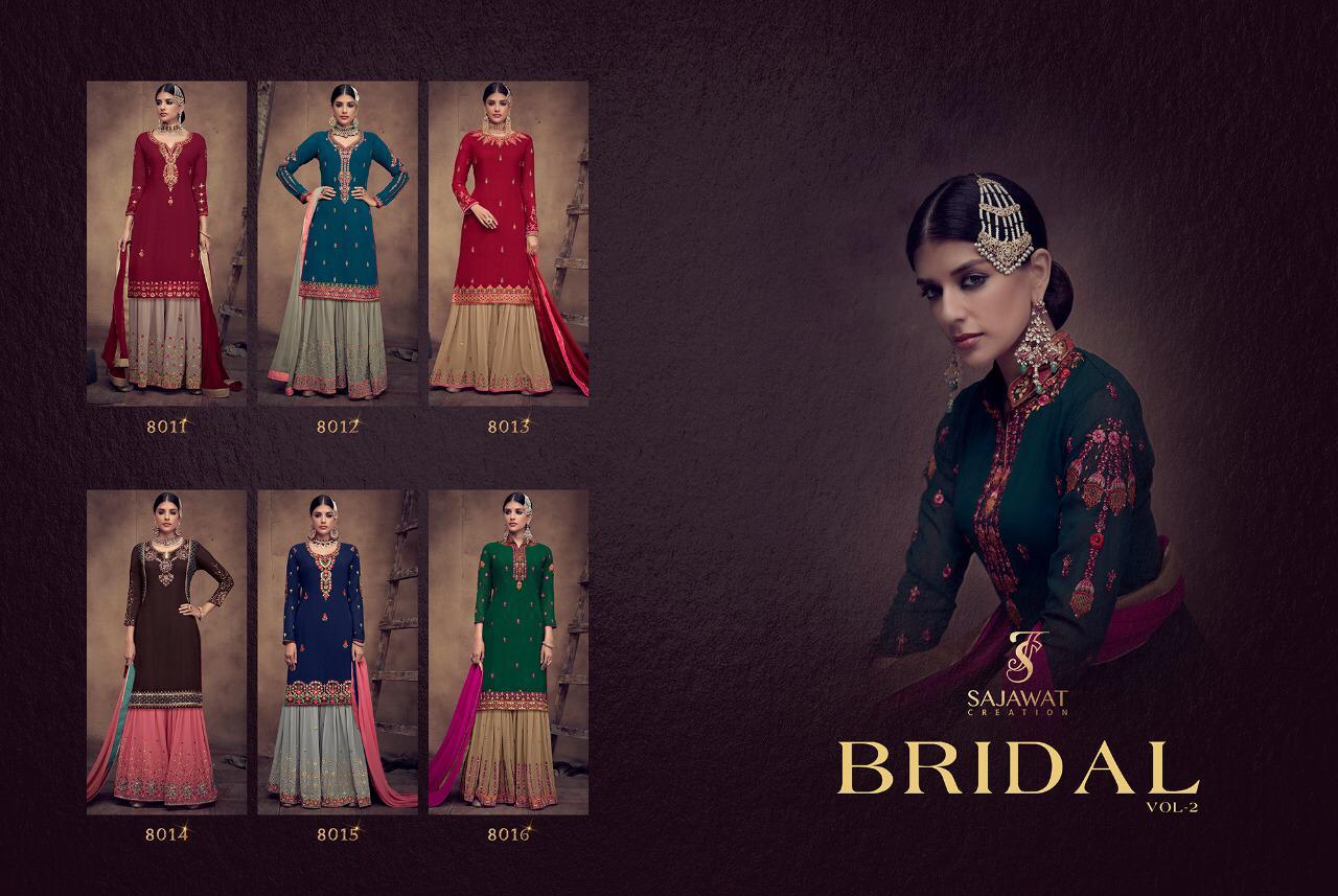 Buy Online Bridal Vol 2 By Sajawat Creation Series 8011 To 8016 Designer Party Wear Suits Wholesale Supplier Gujarat 6 Pcs of Full Catalogue at Wholesale Price. Looking for Bridal Vol 2 By Sajawat Creation Series 8011 To 8016 Designer Party Wear Suits Wholesale Supplier Gujarat Full Catalouge at Best Price? Buy Now Bridal Vol 2 By Sajawat Creation Series 8011 To 8016 Designer Party Wear Suits Wholesale Supplier Gujarat at Wholesale Rate of Rs 10770 with Total 6 Pcs from authroized dealer and supplier of SAJAWAT Brand. Cost of Each piece is just only Rs 1795 which is very low and affordable price to resale the product in your retail store ,This is Surat based Wholesale Supplier & Dealer of SAJAWAT Brand. Click on Brand name to Know more about SAJAWAT Brand's products.Call or Whatsapp on 9898838984 for booking or enquiry