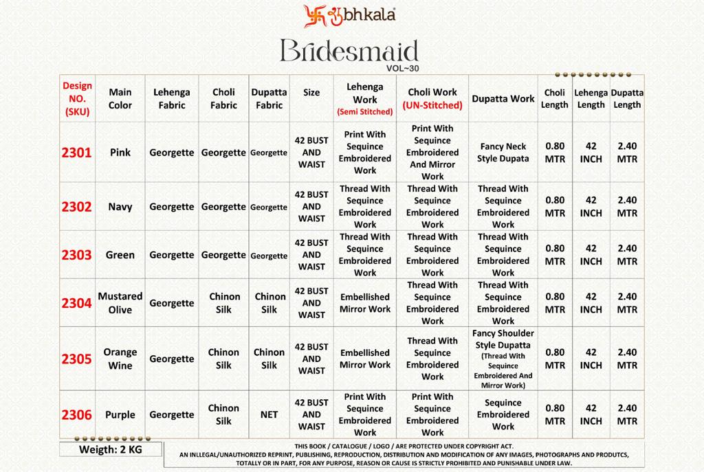 Bridesmaid Vol 30 By Shubhkala Exclusive Embroidered Semi Stitched Lehenga Choli Collection Single And Set Stockiest And Supplier Surat
