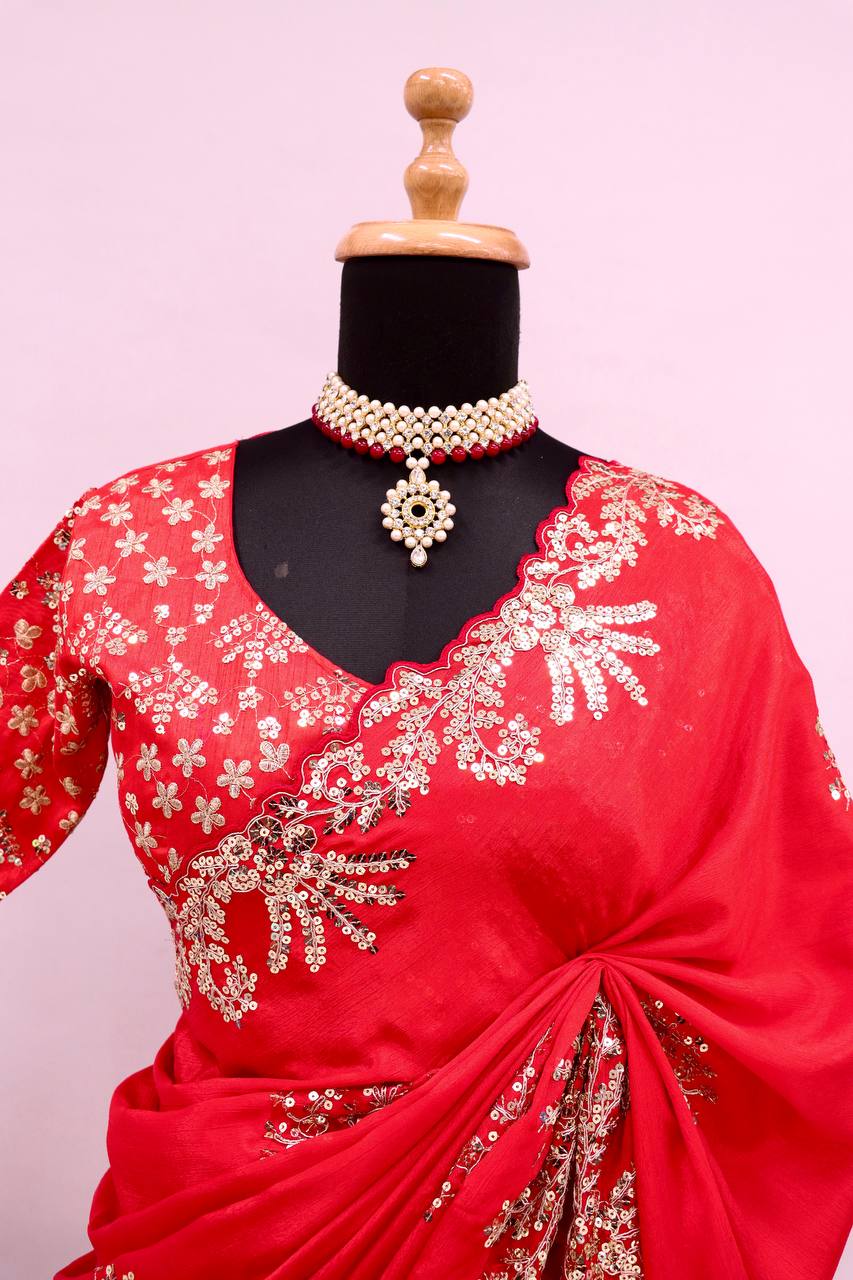 *DS NO : BT-3082* *SAREE DETAIL* SAREE FABRIC : CHINON SILK SAREE WORK : FANCY EMBROIDERY CODDING WITH SEQUINS WORK SAREE 5.50mtr *BLOUSE DETAIL* BLOUSE FABRIC : MONO BANGLORY SILK BLOUSE WORK : FANCY EMBROIDERY SEQUINS WORK BLOUSE UNSTICHED *PRICE : 1079/- per pcs* GST SHIP EXTRA Single available 100+Singles |