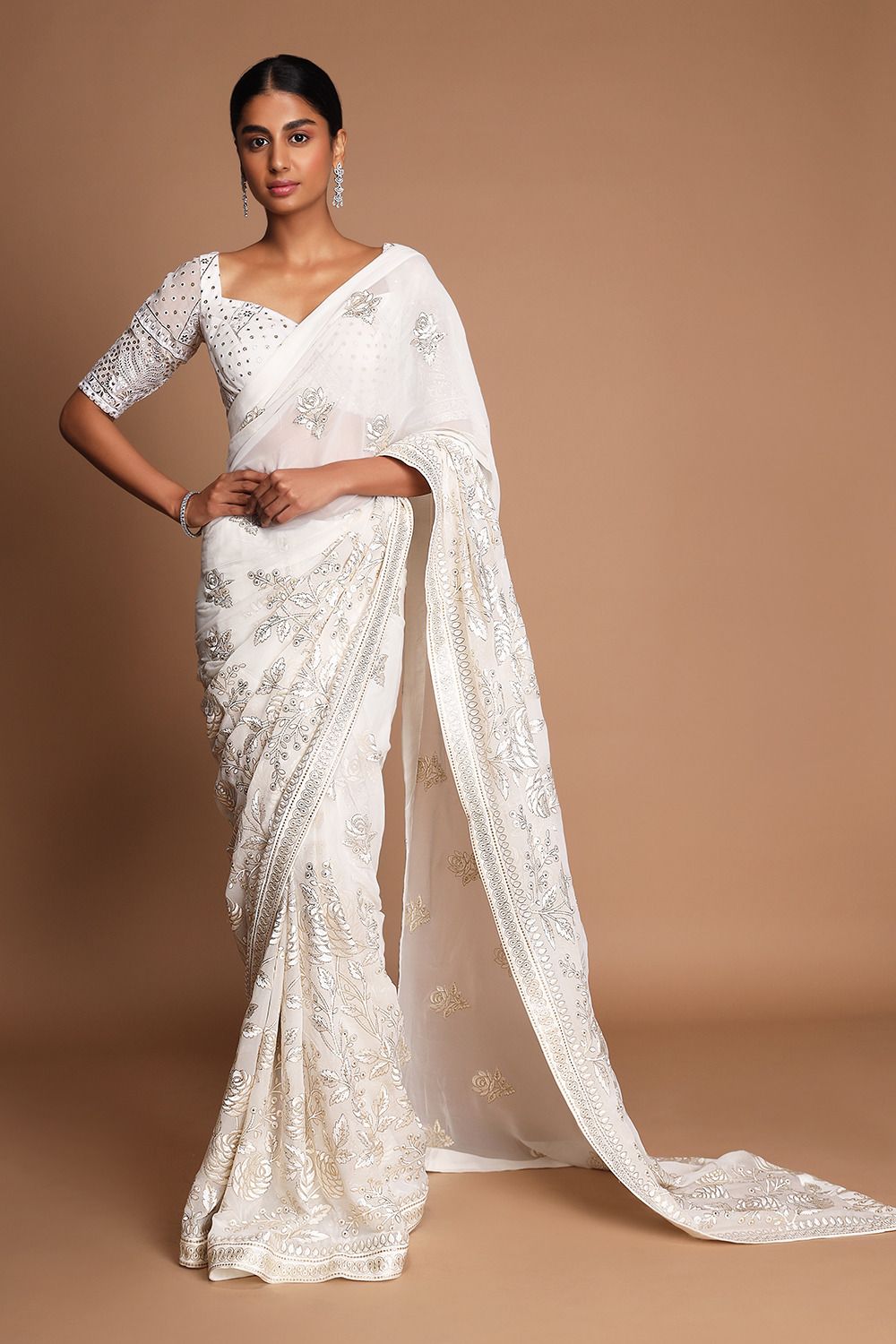 *DS NO : BT-355* *SAREE DETAIL* SAREE FABRIC :- HEAVY SOFT GEORGETTE SAREE WORK : FANCY BEAUTIFUL 7 MM EMBRODERY HEAVY SEQUENCE AND TON TO TON HEAVY THREAD WORK *BLOUSE DETAIL* BLOUSE FABRIC : HEAVY MONO BANGLORY BLOUSE WORK : FANCY EMBROIDERY HEAVY 7 MM SEQUENCE WITH THREAD WORK BLOUSE UNSTITCHED *PRICE : 1559/- per pcs* Gst 5% extra ship extra 100+Singles |