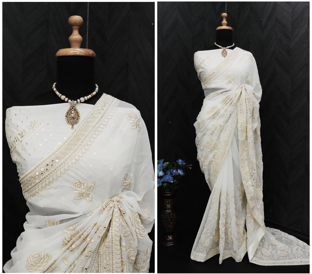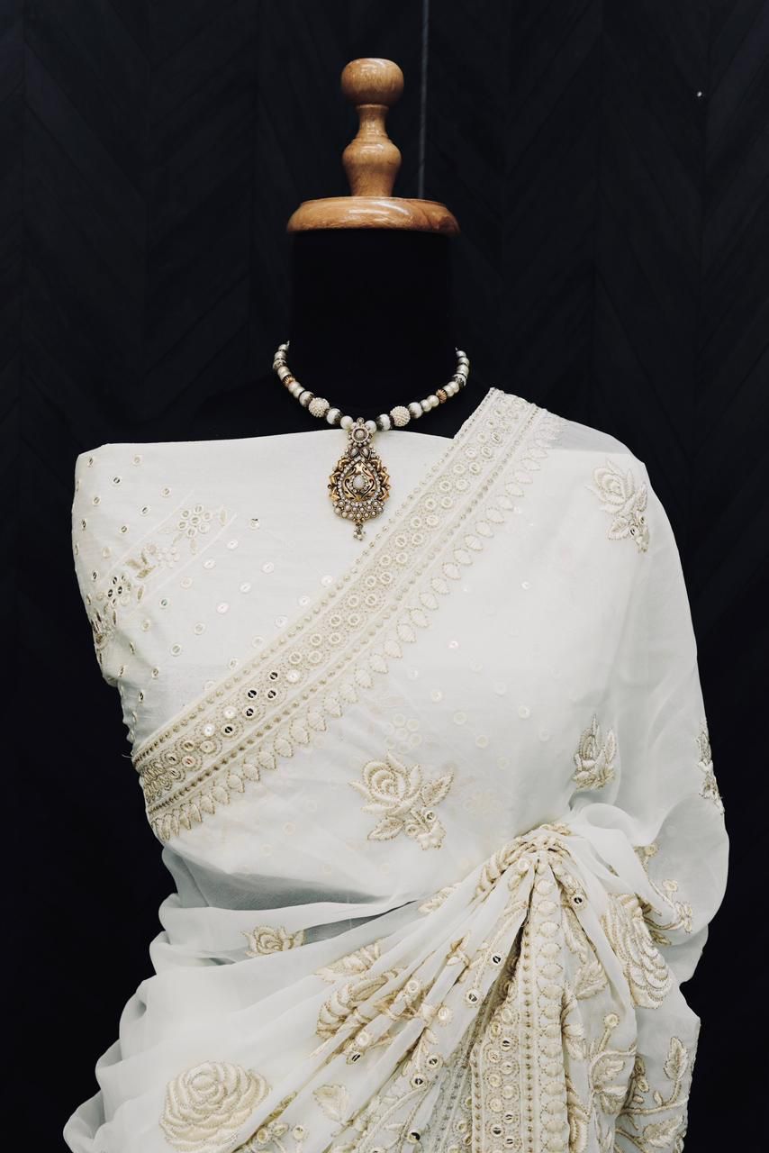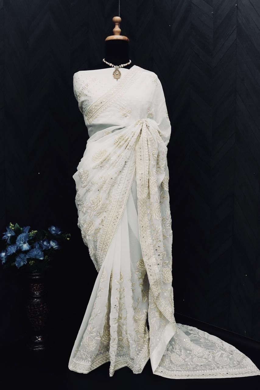 Bt 355 Heavy Georgette Embroidered Work Beautiful Sarees