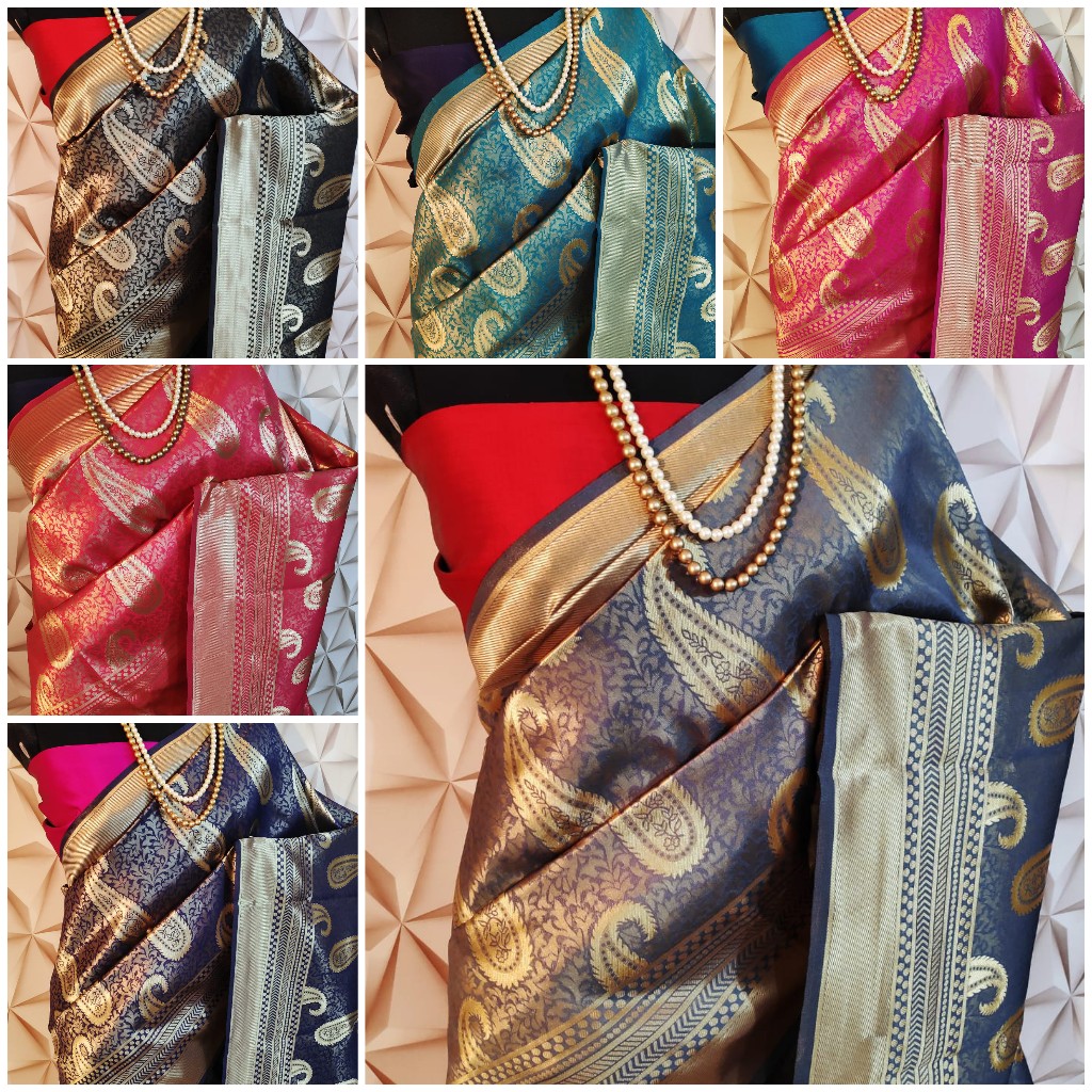 *NEW LAUNCHING* *Catalog: BULLET* Banarasi Handloom Weaving Silk Saree With Rich Zari Pallu N Rich Heavy Border With Plain Running Blouse n All Over Zari Butta Weaves *8 color ready to ship* *Price :650/-* *GST SHIP EXTRA* |