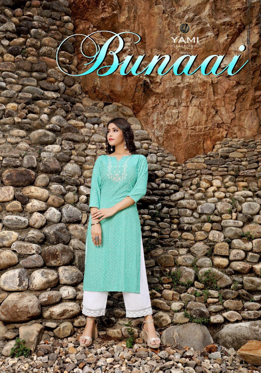 Buy Online Bunaai By Yami Fashion Slub Kurtis With Plazzo Wholesale Supplier Surat 8 Pcs of Full Catalogue at Wholesale Price. Looking for Bunaai By Yami Fashion Slub Kurtis With Plazzo Wholesale Supplier Surat Full Catalouge at Best Price? Buy Now Bunaai By Yami Fashion Slub Kurtis With Plazzo Wholesale Supplier Surat at Wholesale Rate of Rs 6800 with Total 8 Pcs from authroized dealer and supplier of Brand. Cost of Each piece is just only Rs 850 which is very low and affordable price to resale the product in your retail store ,This is Surat based Wholesale Supplier & Dealer of Brand. Click on Brand name to Know more about Brand's products.Call or Whatsapp on 9898838984 for booking or enquiry