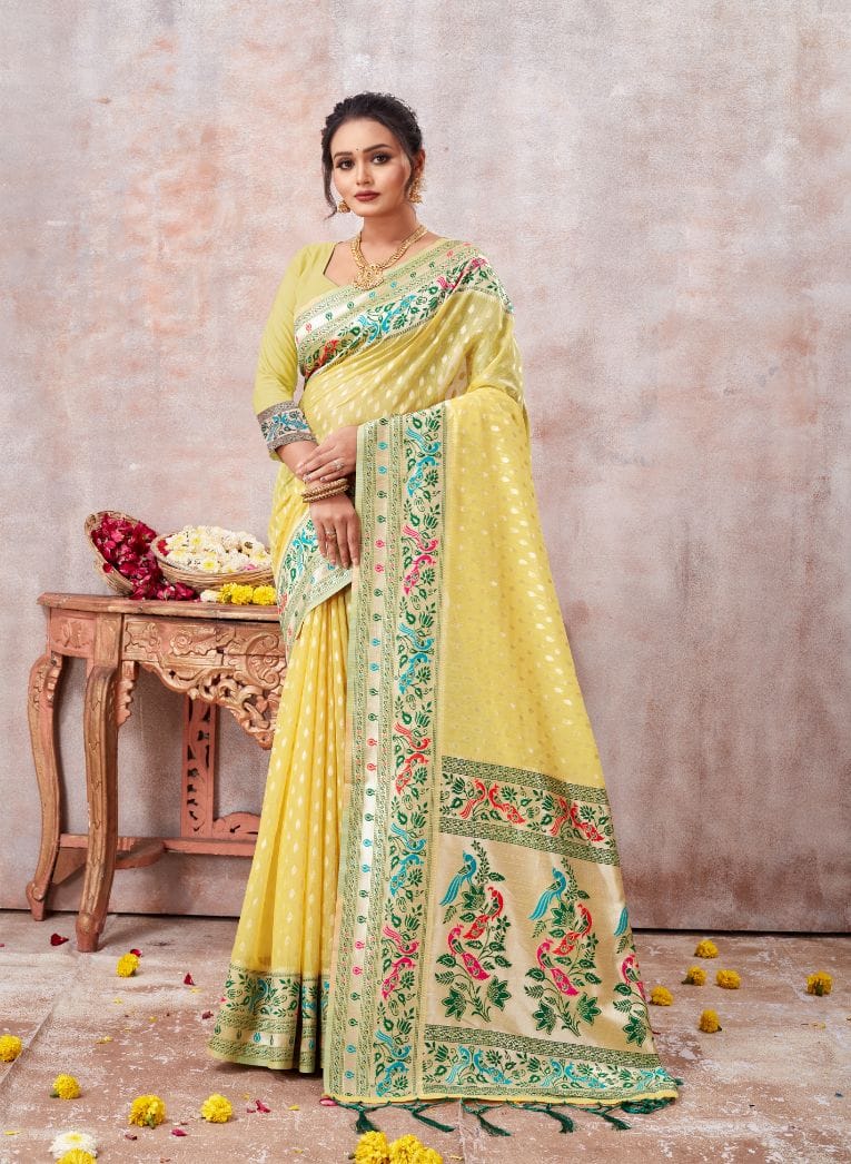 ? *New Catalog Exclusively Launching From Our Newly Launched Brand:- BUNAWAT* ? Catalog Name: *KALAWATI* Brand: *BUNAWAT* Product Type: Saree Fabric: Kota Cotton Price Per Piece: 1225/- Gst Extra: 5% Work: Zari Woven Work Other Specifications: Rich Pallu Weaving & Tassels on Pallu Saree Mtr: 5.5 Mtr Blouse: 0.8 Mtr Total Pcs: 6 _*Book your orders now*_ 100+Singles |