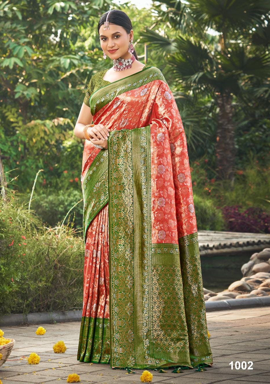 ? *New Catalog Exclusively Launching From Our Newly Launched Brand:- BUNAWAT* ? Catalog Name: *POONAM* Brand: *BUNAWAT* Product Type: Saree Fabric: Kanjivaram Silk Price Per Piece: 1750/- Gst Extra: 5% Work: Heavy Woven Work on Full Body Other Specifications: Rich Woven Pallu With Tassels Saree Mtr: 5.5 Mtr Blouse: 0.8 Mtr Total Pcs: 4 _*Book your orders now*_ 100+Singles |