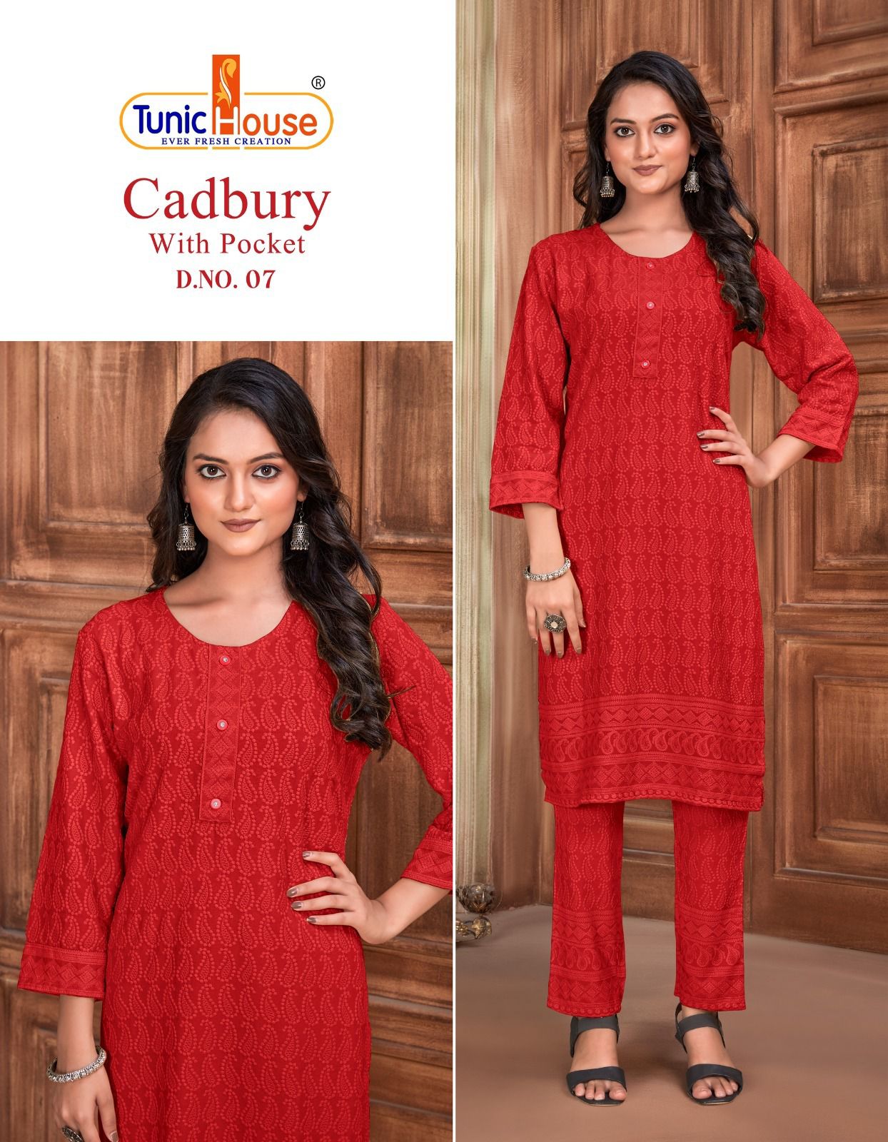 Buy Online Cadbury Tunic House Kurti With Pant 13 Pcs of Full Catalogue at Wholesale Price. Looking for Cadbury Tunic House Kurti With Pant Full Catalouge at Best Price? Buy Now Cadbury Tunic House Kurti With Pant at Wholesale Rate of Rs 10283 with Total 13 Pcs from authroized dealer and supplier of TUNIC HOUSE Brand. Cost of Each piece is just only Rs 791 which is very low and affordable price to resale the product in your retail store ,This is Surat based Wholesale Supplier & Dealer of TUNIC HOUSE Brand. Click on Brand name to Know more about TUNIC HOUSE Brand's products.Call or Whatsapp on 9898838984 for booking or enquiry