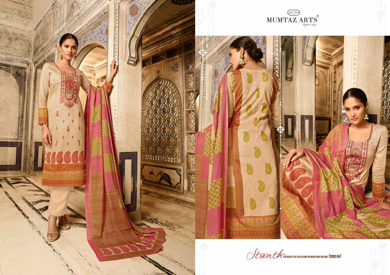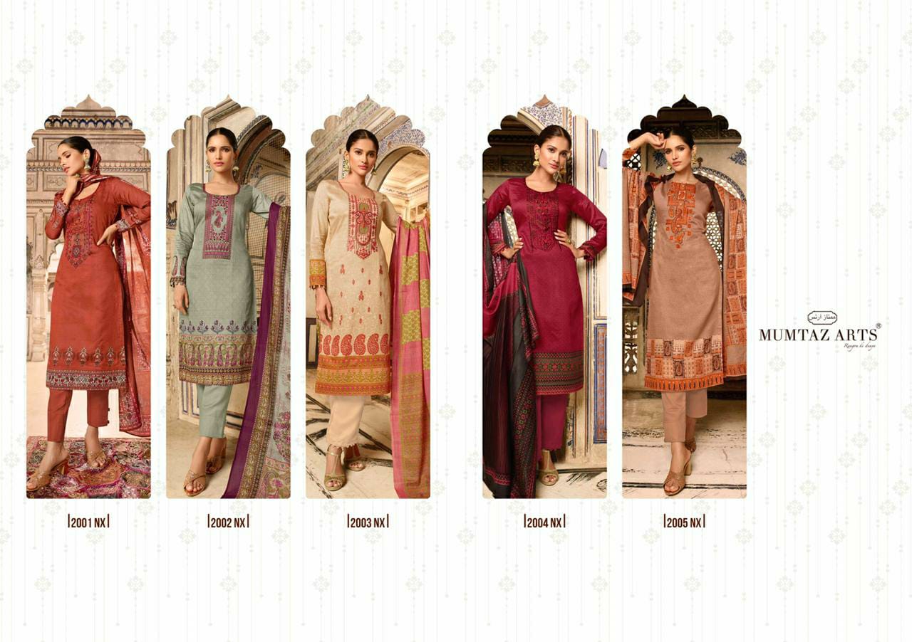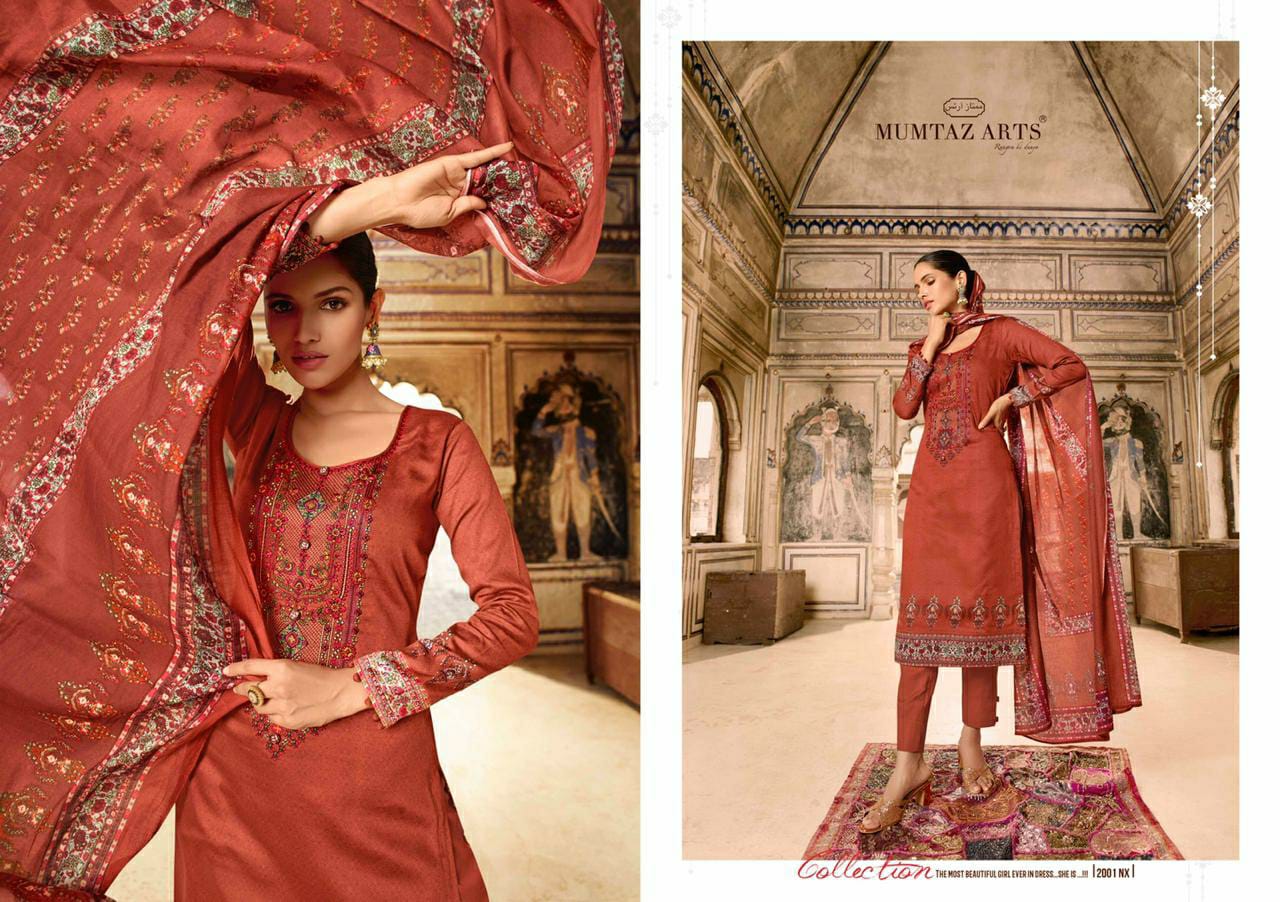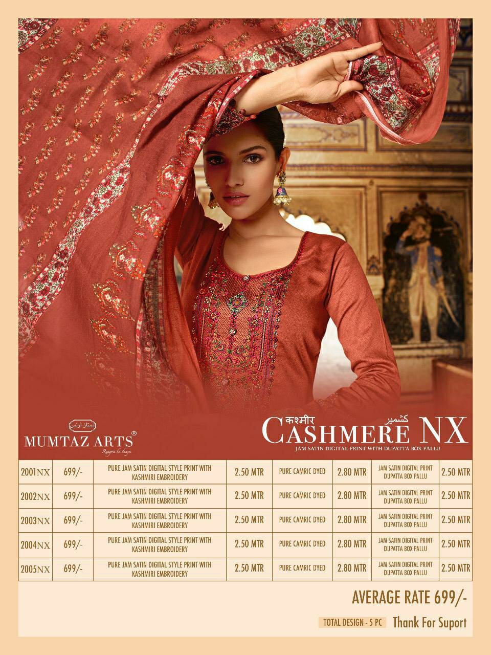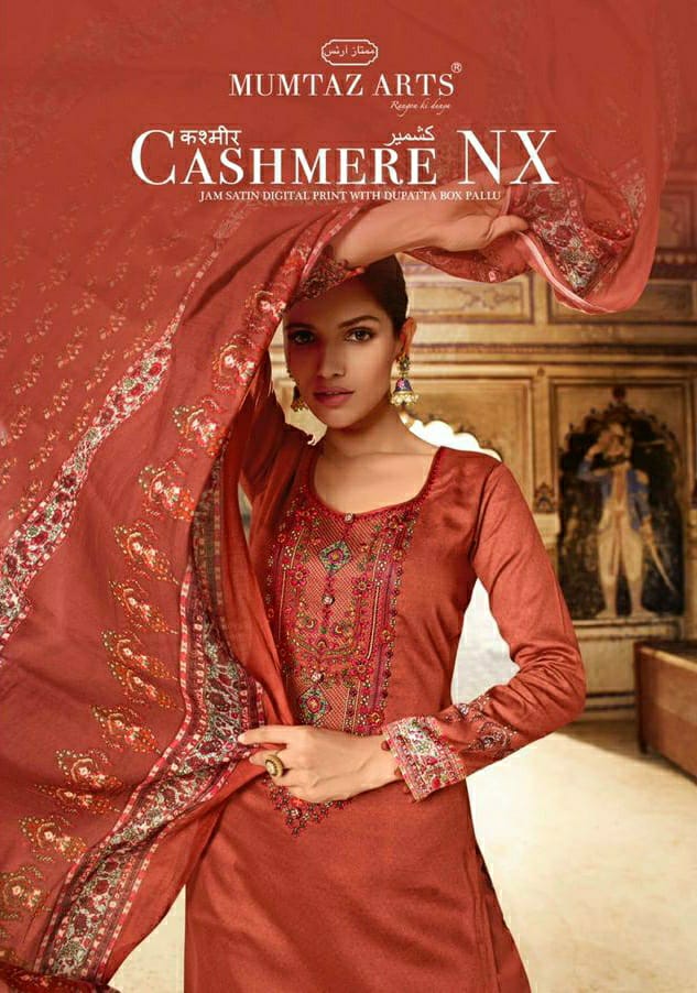 *Brand :* MUMTAZ ARTS *Catalog Name :* Cashmere Hit Nx *Price :* ?699 *Piece :* 5 *Total Price :* 3495 ( GST Extra ) *Size :* Unstitched *Fabric :* Jam satin *Availibility :* On Booking |