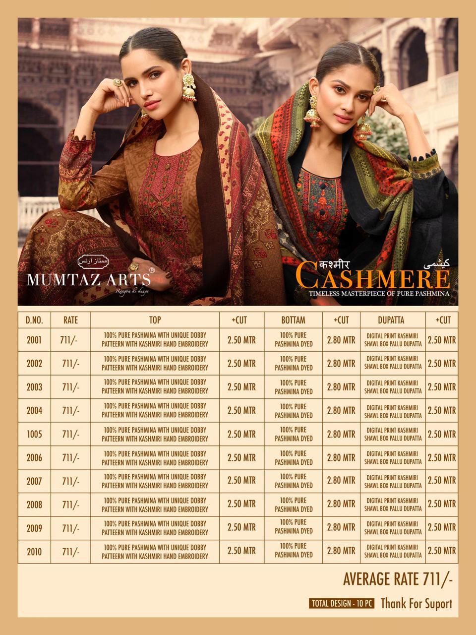 Buy Online Cashmere Vol 1 By Mumtaz Arts Pashmina Designer Suits Wholesale Supplier Gujarat 10 Pcs of Full Catalogue at Wholesale Price. Looking for Cashmere Vol 1 By Mumtaz Arts Pashmina Designer Suits Wholesale Supplier Gujarat Full Catalouge at Best Price? Buy Now Cashmere Vol 1 By Mumtaz Arts Pashmina Designer Suits Wholesale Supplier Gujarat at Wholesale Rate of Rs 7110 with Total 10 Pcs from authroized dealer and supplier of MUMTAZ ARTS Brand. Cost of Each piece is just only Rs 711 which is very low and affordable price to resale the product in your retail store ,This is Surat based Wholesale Supplier & Dealer of MUMTAZ ARTS Brand. Click on Brand name to Know more about MUMTAZ ARTS Brand's products.Call or Whatsapp on 9898838984 for booking or enquiry