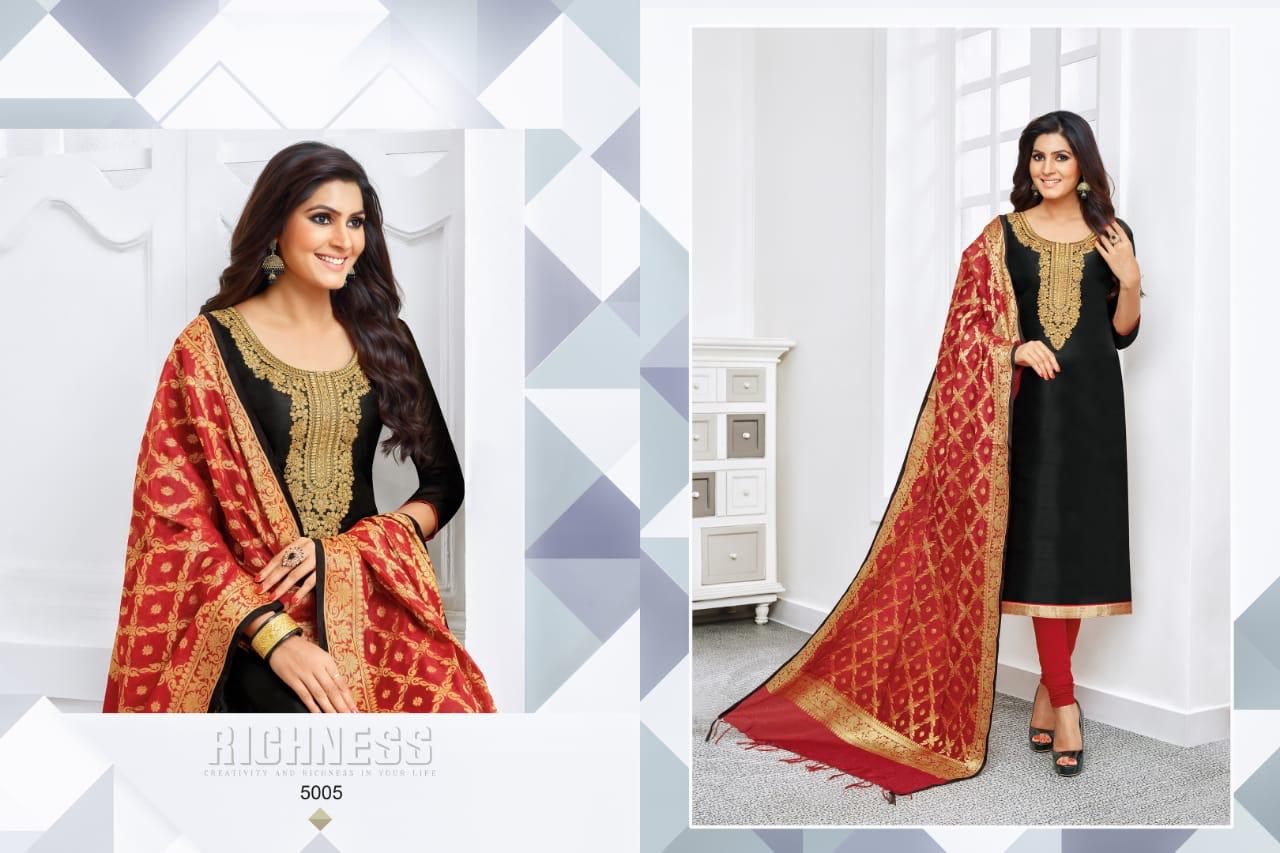 Buy Online Celebrity By Rr Fashion 5001 Series Fancy Modal Silk Salwar Kameez Catlog Wholesale Dealer And Supplier Surat 12 Pcs of Full Catalogue at Wholesale Price. Looking for Celebrity By Rr Fashion 5001 Series Fancy Modal Silk Salwar Kameez Catlog Wholesale Dealer And Supplier Surat Full Catalouge at Best Price? Buy Now Celebrity By Rr Fashion 5001 Series Fancy Modal Silk Salwar Kameez Catlog Wholesale Dealer And Supplier Surat at Wholesale Rate of Rs 8100 with Total 12 Pcs from authroized dealer and supplier of RR fashion Brand. Cost of Each piece is just only Rs 675 which is very low and affordable price to resale the product in your retail store ,This is Surat based Wholesale Supplier & Dealer of RR fashion Brand. Click on Brand name to Know more about RR fashion Brand's products.Call or Whatsapp on 9898838984 for booking or enquiry